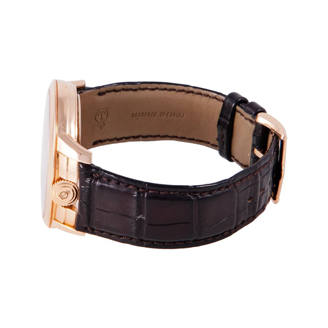This Pre-owned Arnold & Son Time Pyramid 44.6mm, rose gold case, skeleton dial, rose gold bezel and brown leather strap is in very good condition. Mechanised by Arnold & Son calibre 1615 manual movement. Includes 2 years Timepiece360 warranty.