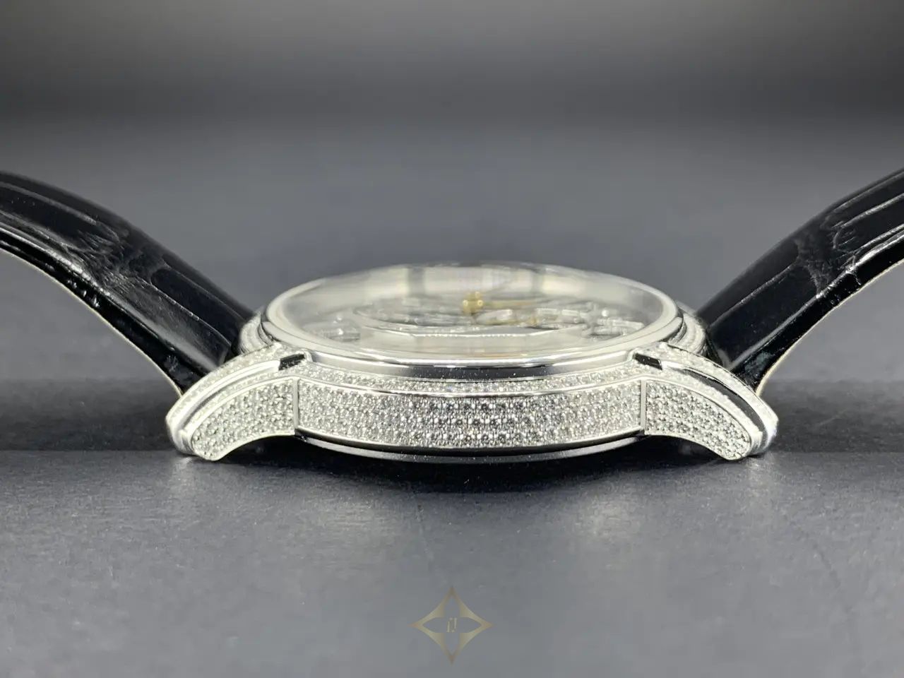 Case and Bezel: The watch features a 39.5 mm oval case crafted from 18-carat white gold, with a thickness of 9.8 mm. The bezel is adorned with brilliant-cut diamonds, enhancing its luxurious appeal.