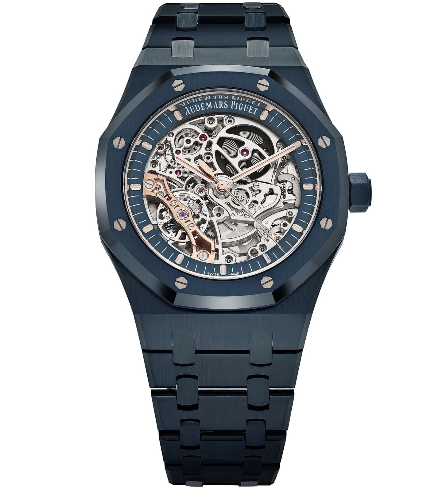 The Audemars Piguet Royal Oak 15416CD.OO.1225CD.01 is a groundbreaking 2025 release that pushes the boundaries of material innovation and openworked design. Crafted entirely from Bleu Nuit, Nuage 50 ceramic, this 41mm Royal Oak Double Balance Wheel Openworked stands out as the first Royal Oak to feature this deep, iridescent blue ceramic across both the case and integrated bracelet. The striking hue—long associated with AP’s most iconic dials—now fully envelops the watch in a material that is not only visually captivating but also exceptionally lightweight and scratch-resistant.