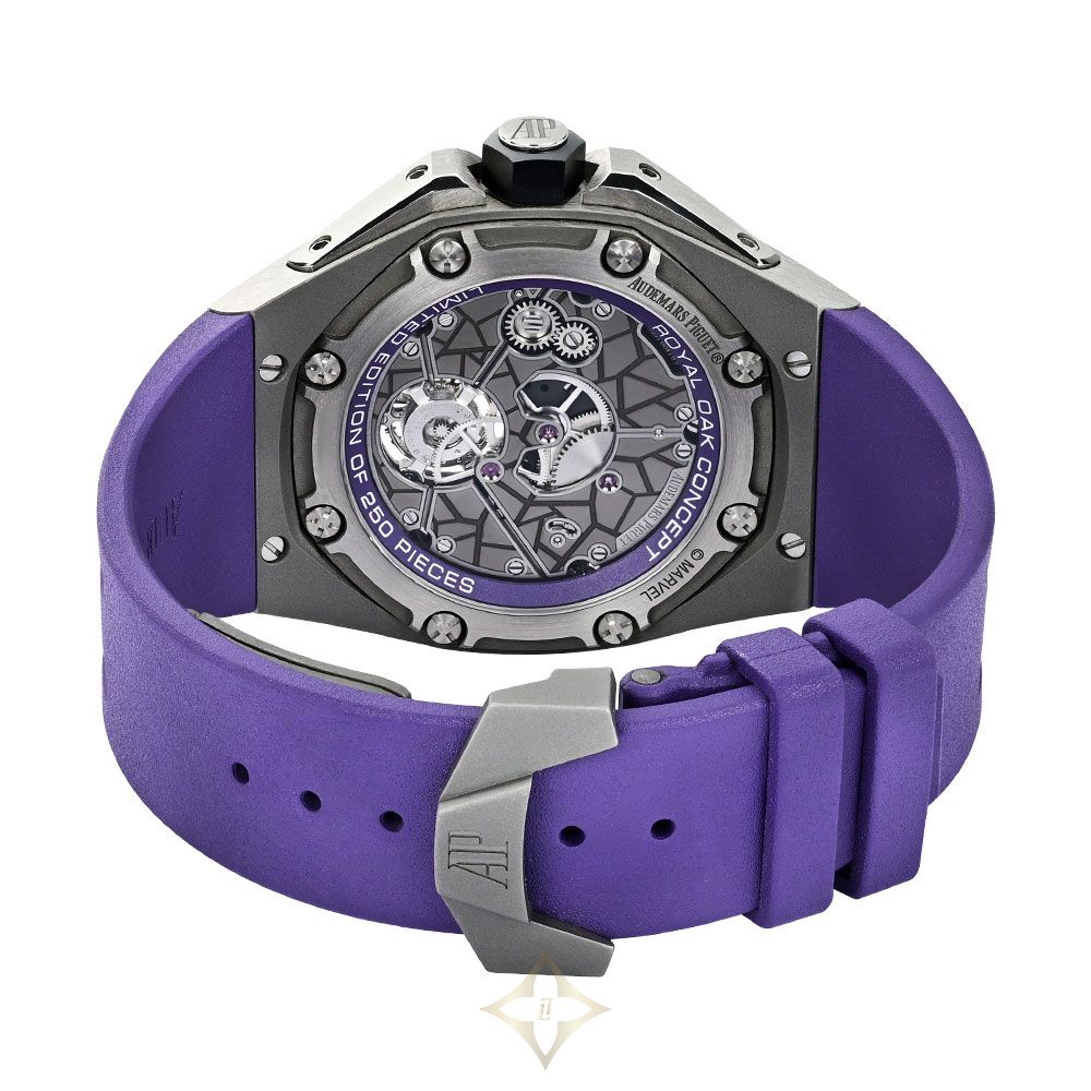 Audemars Piguet Audemars Piguet Royal Oak Concept 'Black Panther' (Reference 26620IO.OO.D077CA.01). A 42mm titanium and ceramic manual winding wristwatch with flying tourbillon. Price: 264,600 USD International shipping available Customs duties and taxes may apply. Ships from: New York, United States Taxes not included VAT and other taxes are not reflected in the listed pricing. Authenticity guaranteed We guarantee the authenticity of this item. Description Includes Audemars Piguet papers. Condition Report: Very Good The watch is in overall very good condition with light wear throughout commensurate with age. The movement is running at the time of cataloging, however, it was not tested for the accuracy of time or duration of the power reserve and may need service at the buyer's discretion. Please note that Sotheby's does not guarantee the future working of the movement. Please note that this item is final sale and not eligible for return. Reference Number: 26620IO.OO.D077CA.01 Model: Royal Oak Concept Complication: Tourbillon Gender: Men's Dial Color(S): Skeletonized Dial Numerals: Arabic Caliber: 2965 Movement Type: Manual Wind Case Material(S): Titanium Case Size (Mm): 42 Case Back: Sapphire display-back, Secured by screws Band Material: Rubber Clasp Type: Deployant buckle Clasp Material(S): Titanium Signature: Case, Dial, Movement Papers: Yes SKU:!DB2N9 ——— SOTHEBY’s GENEVA 2, Rue François-Diday, Geneva 1204, Switzerland Phone: +41 22 908 48 00 CONTACT * Caroline Lang SVP | Chairman, Switzerland & DC Europe Geneva Email: caroline.lang@sothebys.com