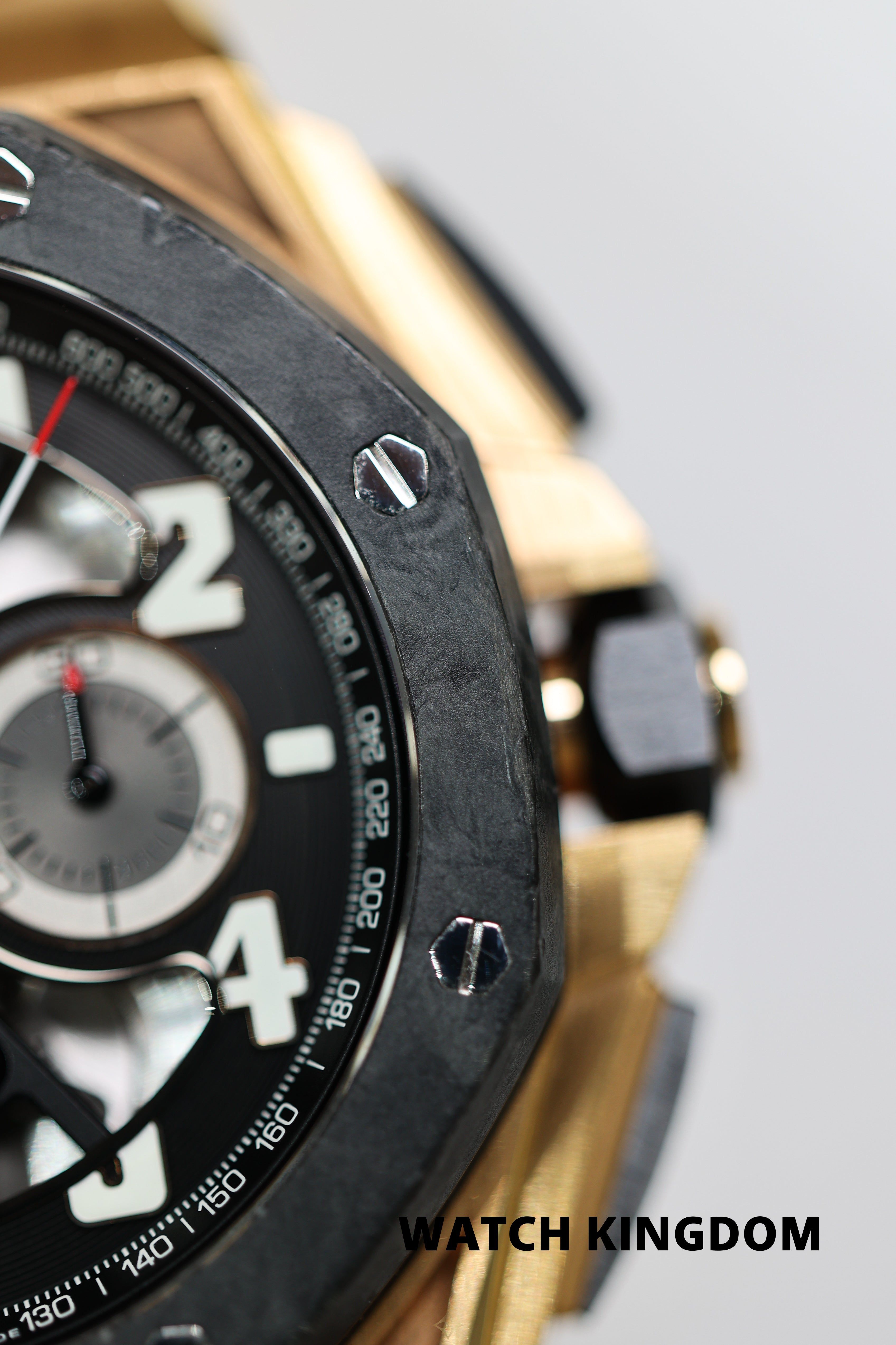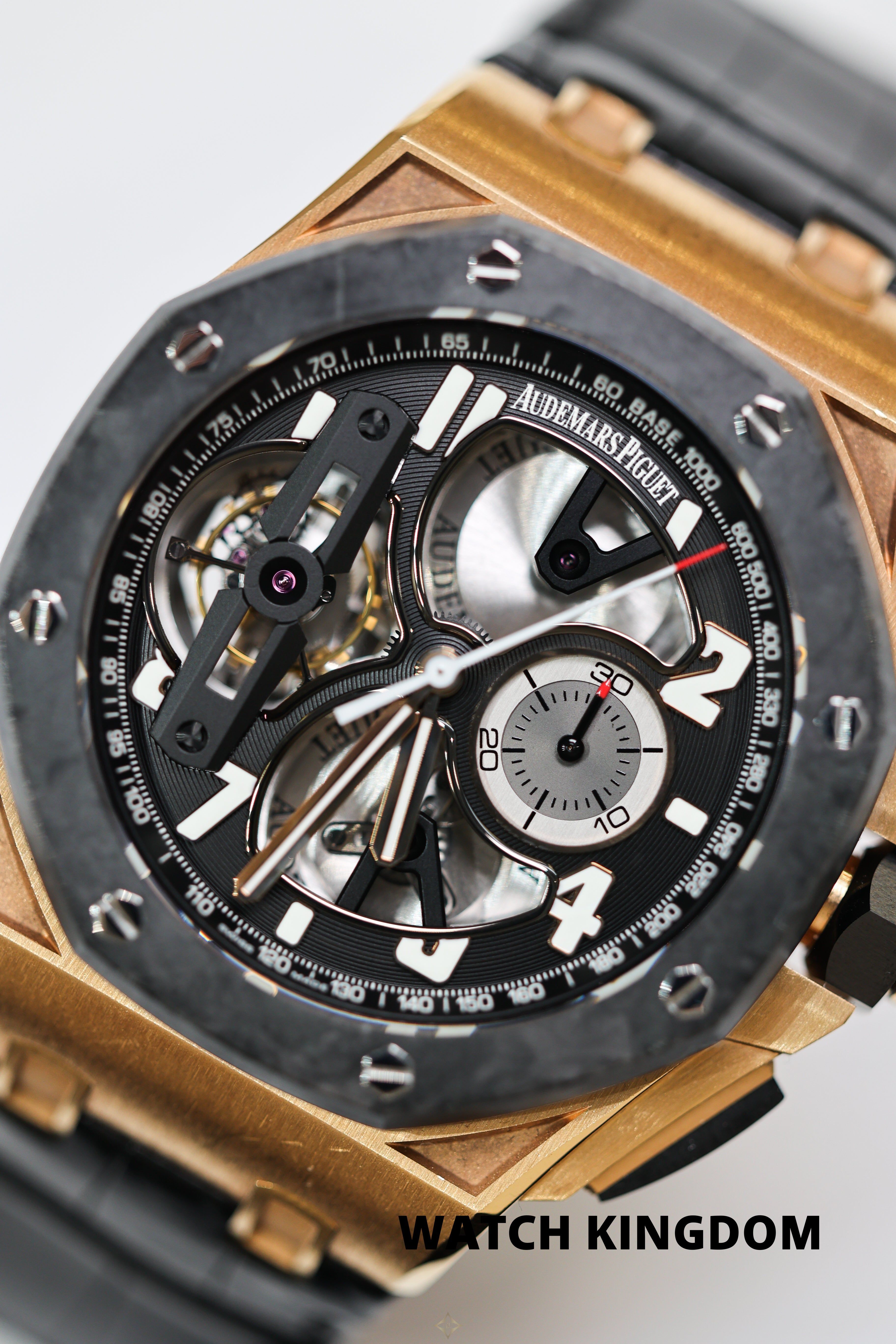 Audemars Piguet Royal Oak Offshore Tourbillon Chronograph Ref. 26288OF.OO.D002CR.01 PRICE: AU $169,995.00 DESCRIPTION Brand: Audemars Piguet Reference: 26288OF.OO.D002CR.01 Dial: Black, Openworked Bracelet: Alligator Material: 18K Pink Gold, Forged Carbon Diameter: 44mm Condition: Mint, Watch only(Preowned) Store code:A000706 ——— Watch Kingdom Sheraton Grand Sydney Hyde Park, 161 Elizabeth St, Sydney NSW 2000, Australia Phone: +61 424 888 822 Email: info@watchkingdom.com.au