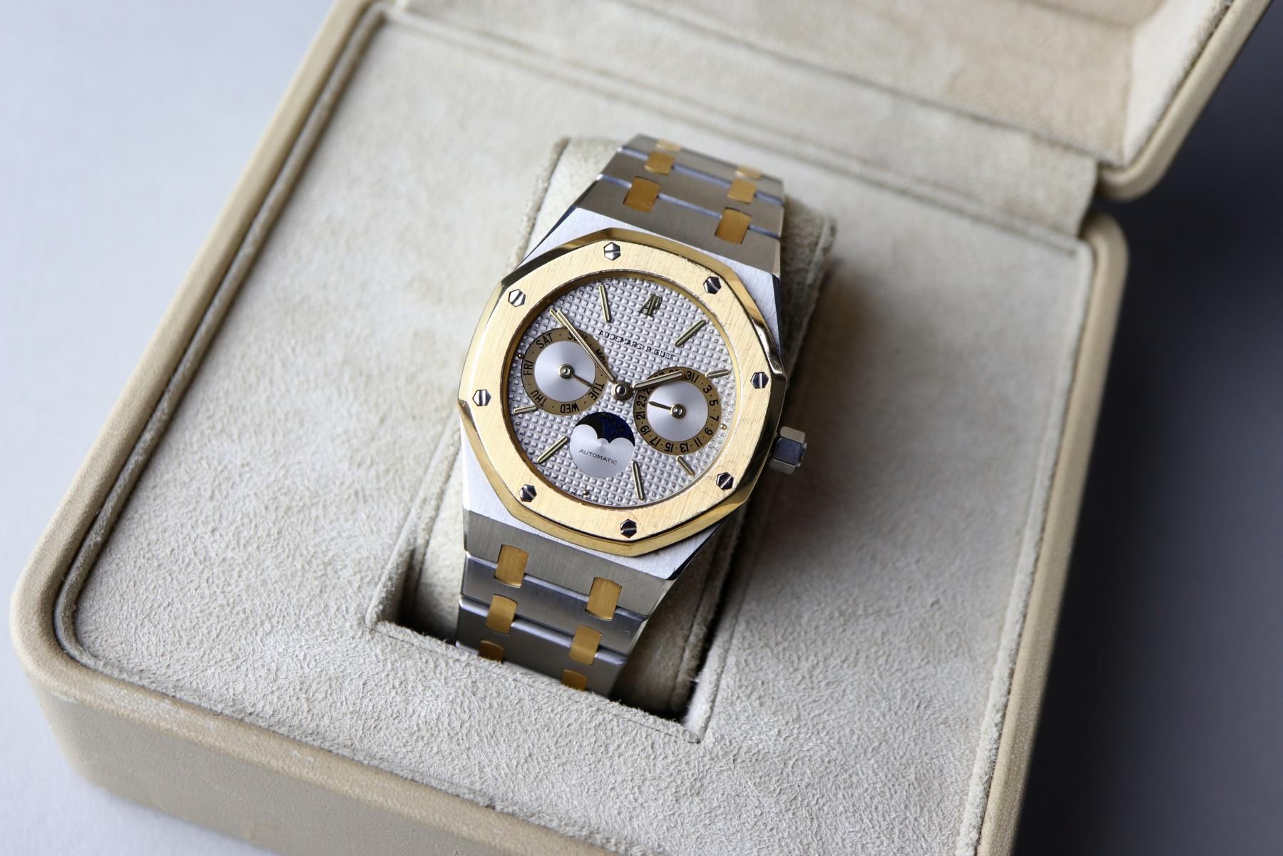 AUDEMARS PIGUET Royal Oak Ref. 25594SA – No. 911 – 1990s PRICE: €26,900.00 DETAILS Brand: Audemars Piguet Reference: 911 Year: 1990s Model: Royal Oak Material: 18k solid gold / stainless steel Movement: automatic Case diameter without crown: 36mm Bracelet/Strap: original integrated AP bracelet Service history: unknown, running well What you should know: stunning condition, No. 911 ——— Wristclassics GmbH Brückengasse 1b, 78462 Konstanz, Germany WhatsApp: +41 78 810 81 99 Email: info@wristclassics.com