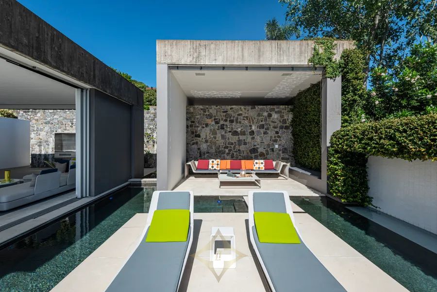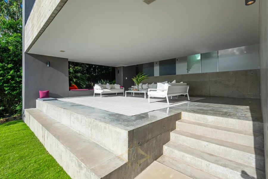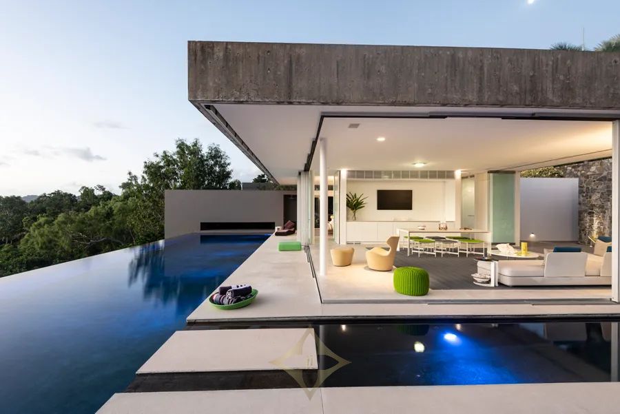 Artistically crafted from concrete, stone and glass, ”Azuris ” designed by the internationally renowned architect Renato D’Ettorre, is a spacious, free-flowing home that is a brilliant contemporary interpretation of idyllic coastal living. The stunning views across the Coral Sea, the idea of equality between internal and external living with easy access to the infinity pool and courtyard, have given a sense of connectivity to the lush surrounds.