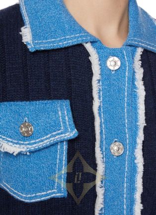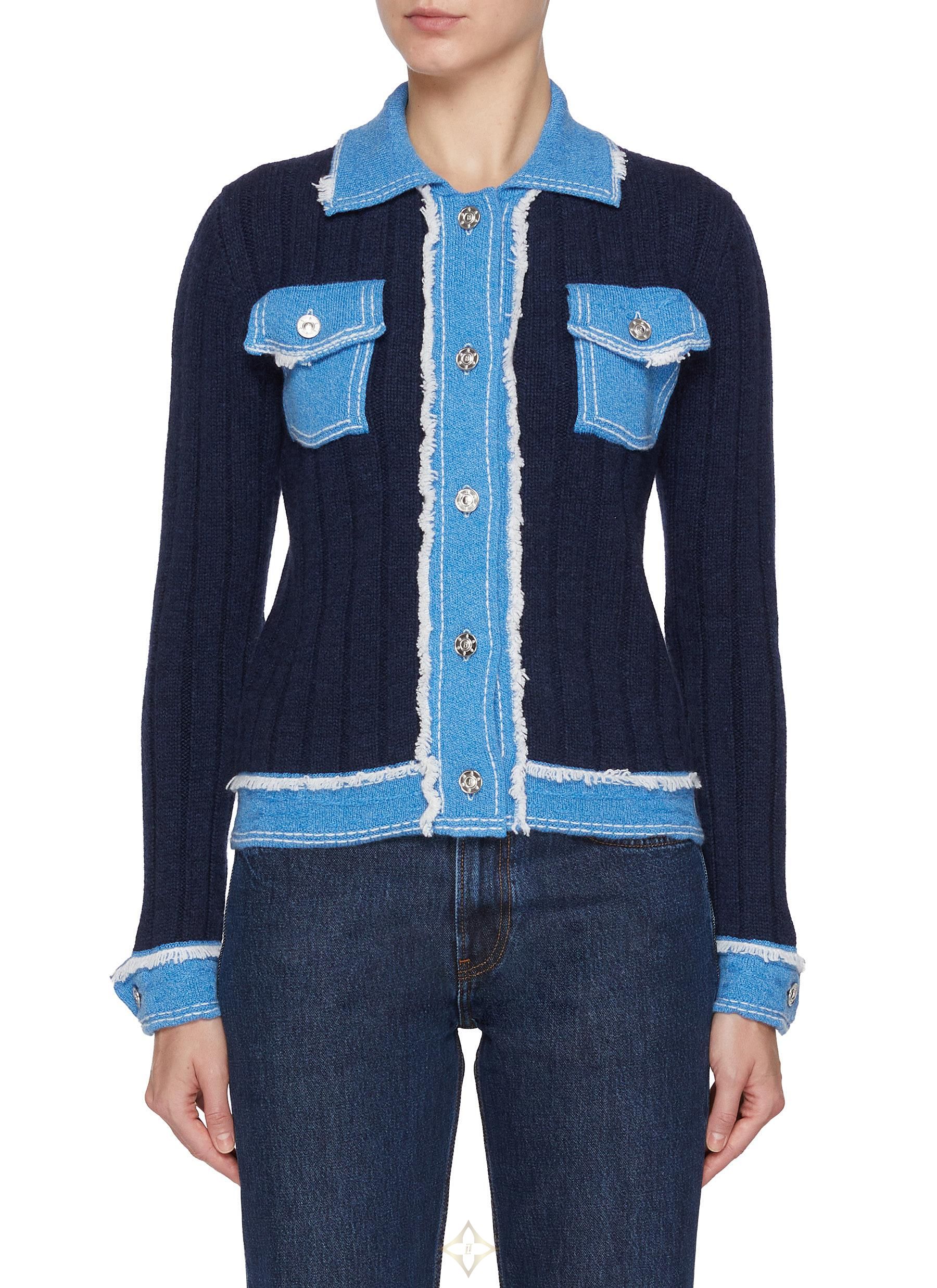 HYBRID FRAYED EDGE DARK WASH DENIM KNIT JACKET