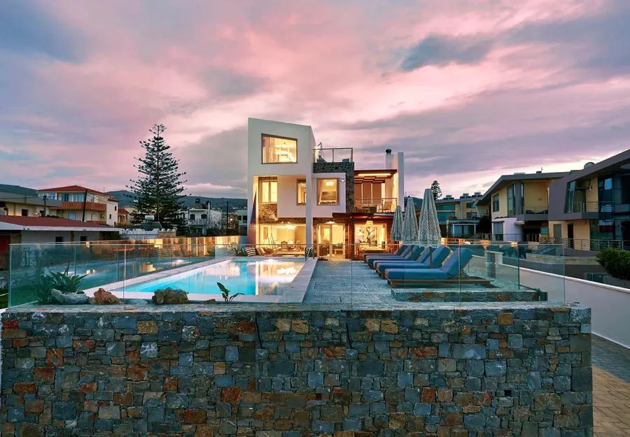 Luxury beach front villa in Heraklion Crete just a few steps from the golden sands of Heraklion, an exclusive 485m² villa offers an unparalleled living experience that combines comfort, sophisticated design and stunning sea & sunset views.