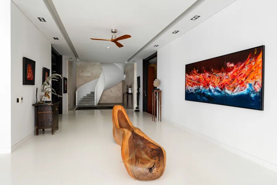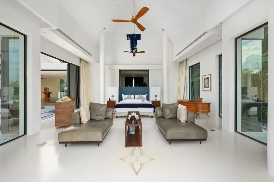 Spanning a double plot of 4.2 rai (6,990m²) with a built-up area of 3,280m², Villa Anaya showcases exquisite Italian finishes, with travertine flowing throughout the interior spaces. Meticulously designed with the golden ratio, every room exudes a harmonious balance of spatial proportions and volumes, creating a serene and aesthetically pleasing environment.