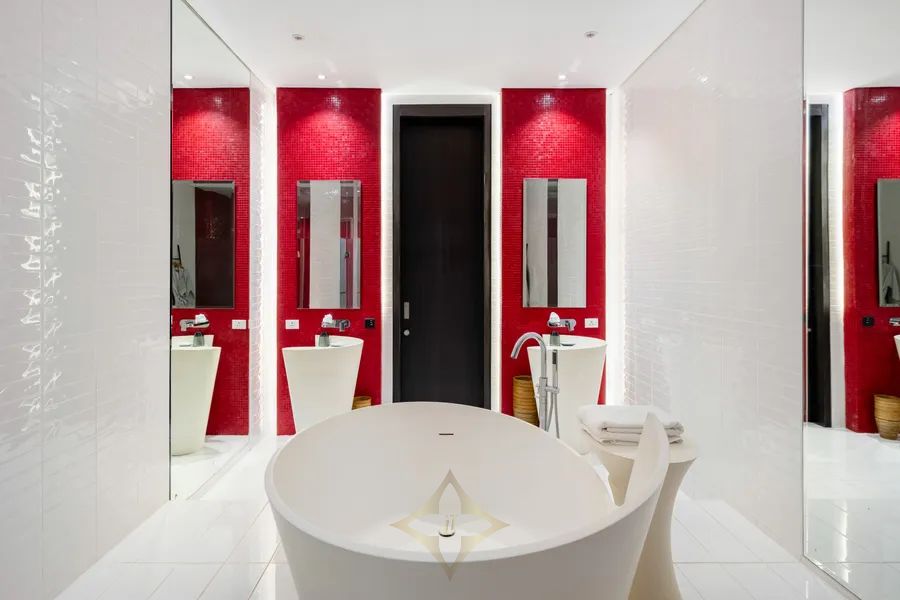 The villa features six opulent ensuite bedrooms, each designed to offer utmost comfort and privacy. Indulge in entertainment and relaxation with the state-of-the-art cinema room, a sophisticated games/library/cigar room, and a dedicated yoga/meditation dance studio. Pamper yourself in the luxurious massage and spa rooms, maintain your fitness routine in the well-equipped gym, and find tranquility in the private office, which can be converted into two additional bedrooms if desired.