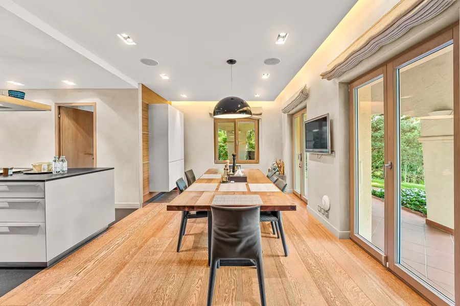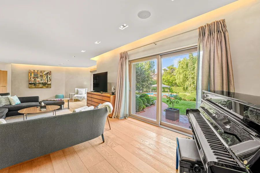 Built in 1990, the property is characterized by a classic style and top-of-the-range features, generous volumes and plenty of light thanks to its large windows opening on a very private garden. It comprises the main house, a guest outbuilding and a garage.