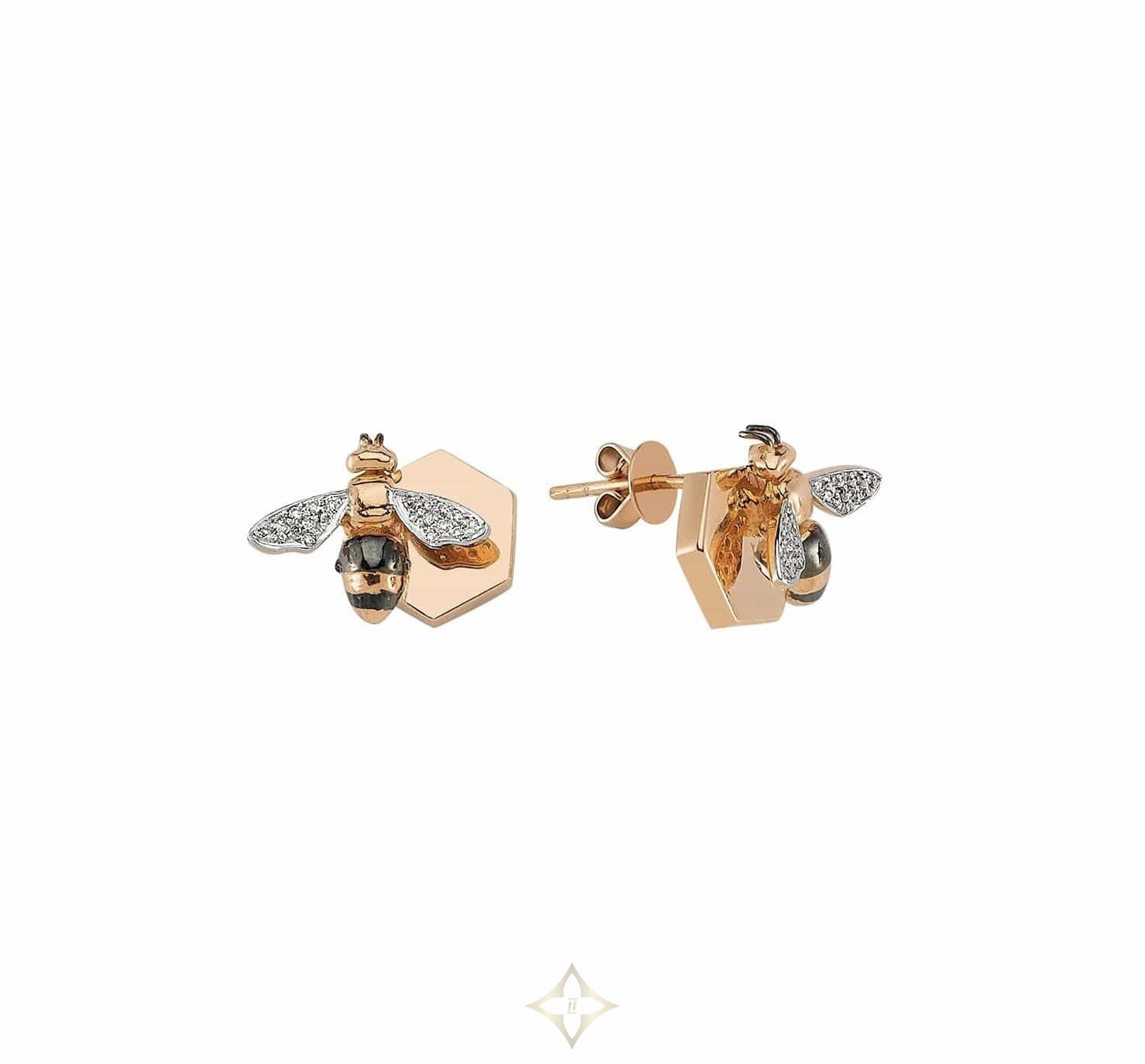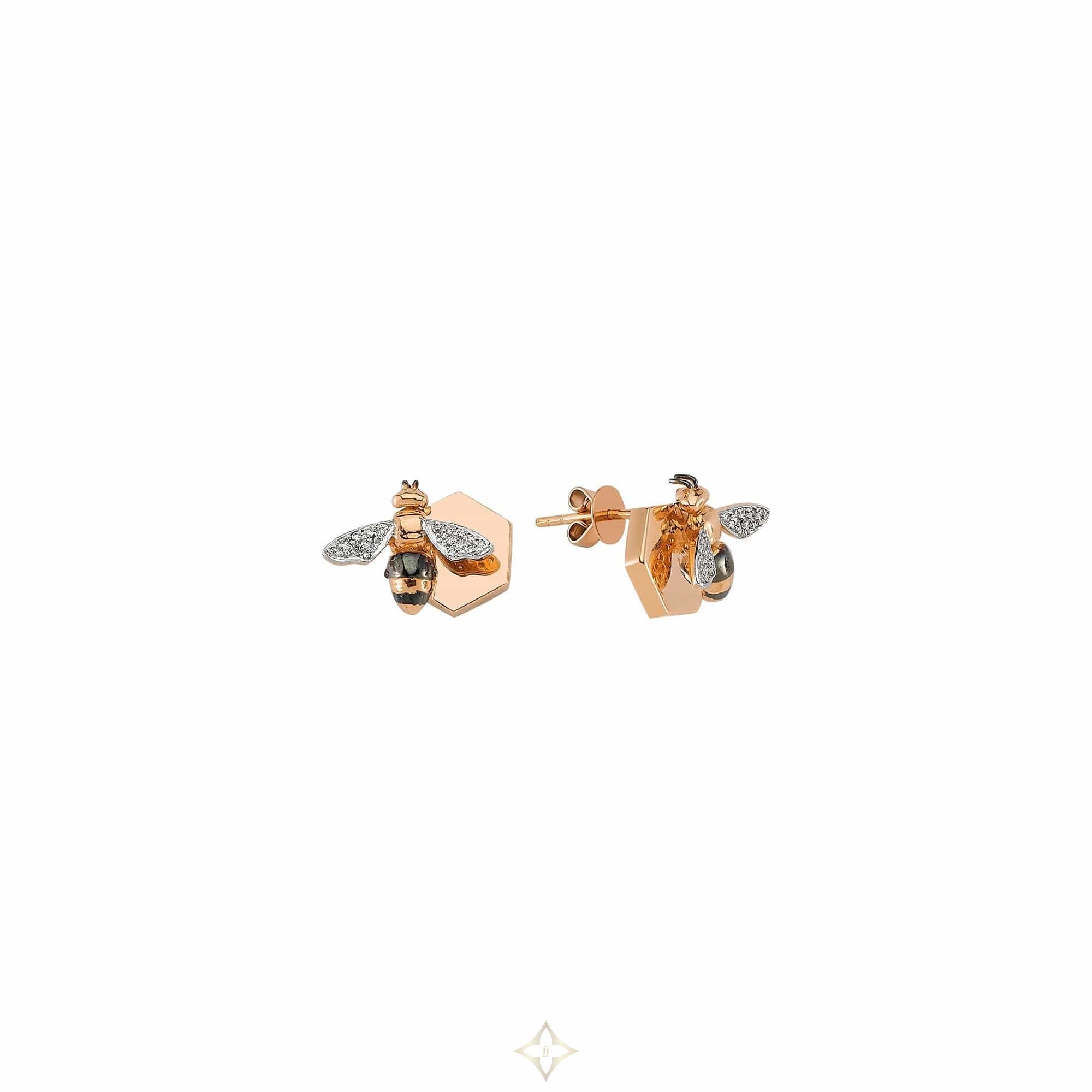 Bee Goddess 14k Honeycomb Earrings .16ct diamonds