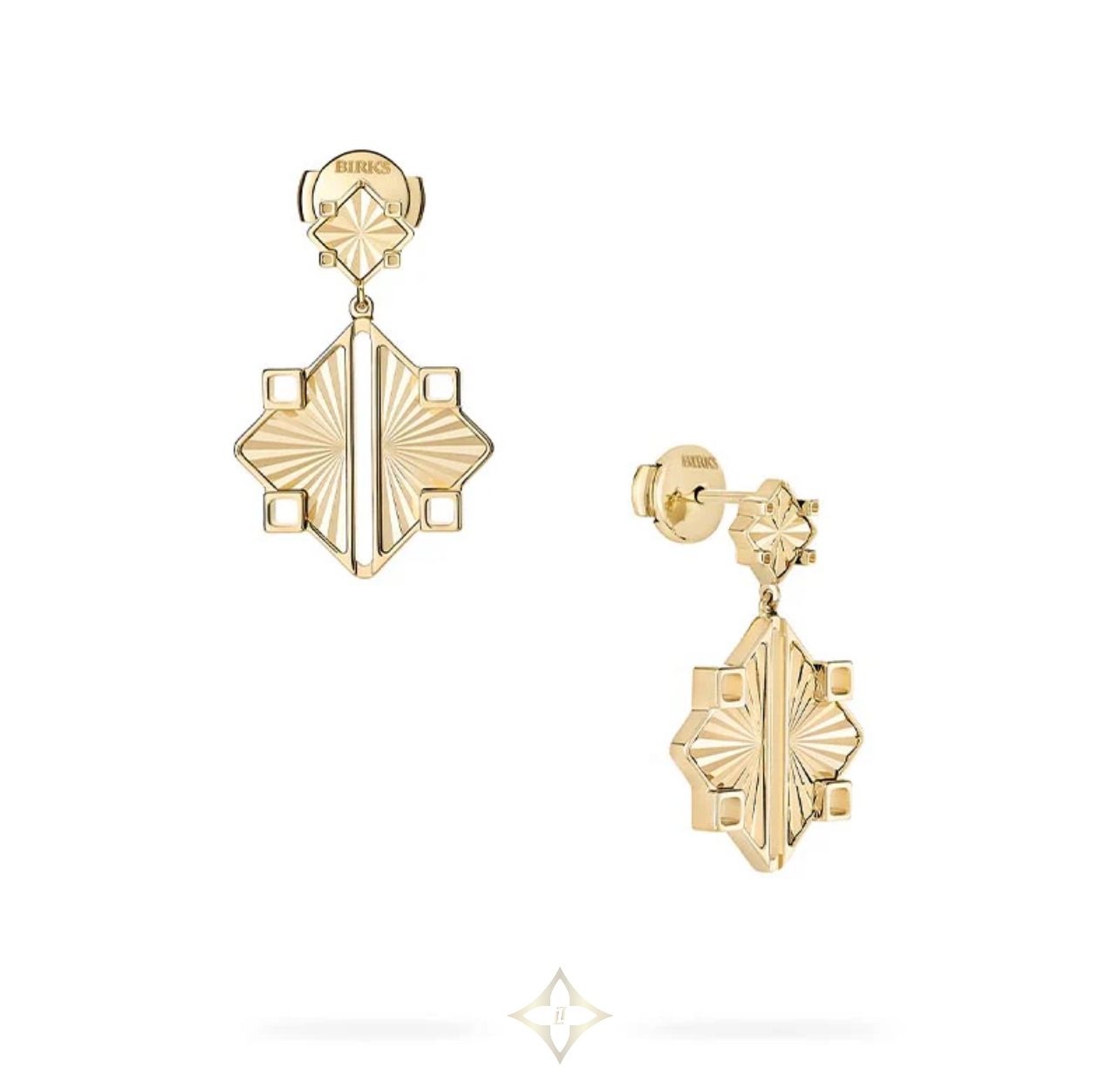 Birks Muse Guilloché Yellow Gold Drop Earrings