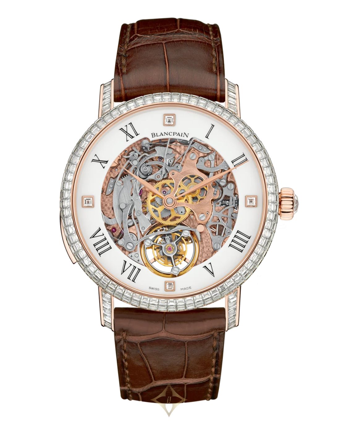 Blancpain Villeret Carrousel Répétition Minutes 0233 6232A 55B The Blancpain Villeret Carrousel Répétition Minutes 0233 6232A 55B Men's watch is a sophisticated timepiece that boasts a large 45.7mm red gold case, making it a bold and impressive statement on the wrist. The case is complemented by an alligator leather strap with a folding clasp, ensuring a comfortable and secure fit for the wearer. The watch is powered by the 233 caliber, a high-end automatic movement known for its accuracy and precision. One of the most impressive features of this watch is its carrousel and minute repeater functions. The carrousel function helps to counteract the effects of gravity on the movement, while the minute repeater function chimes the time in a clear, harmonious tone when activated. It is important to note that this watch has a water resistance rating of 0 bar, meaning it is not designed for water activities. As a high-end luxury watch, it is intended for everyday wear and formal occasions rather than outdoor or sports activities. Overall, the Blancpain Villeret Carrousel Répétition Minutes 0233 6232A 55B Men's watch is an impressive timepiece that combines exceptional craftsmanship and advanced technology. Its intricate complications, elegant design, and luxurious materials make it a desirable addition to any watch collection.