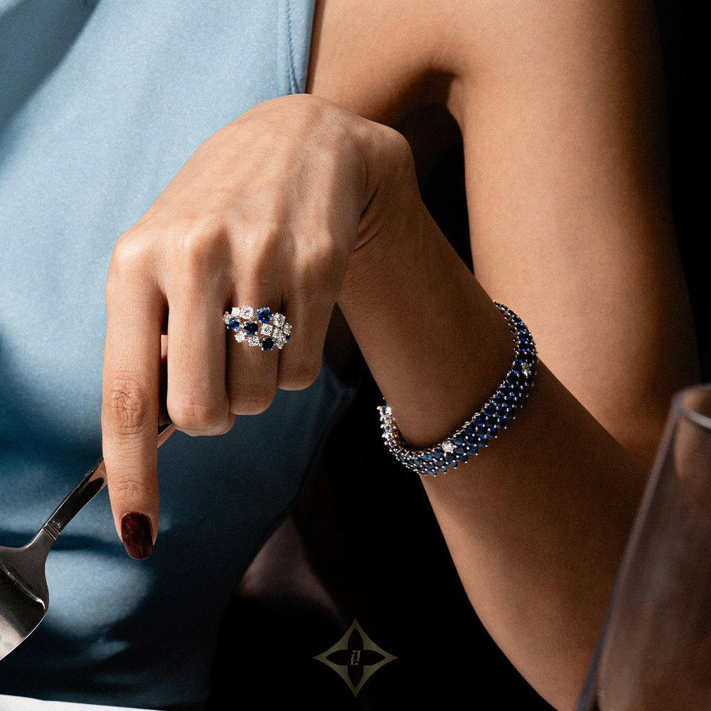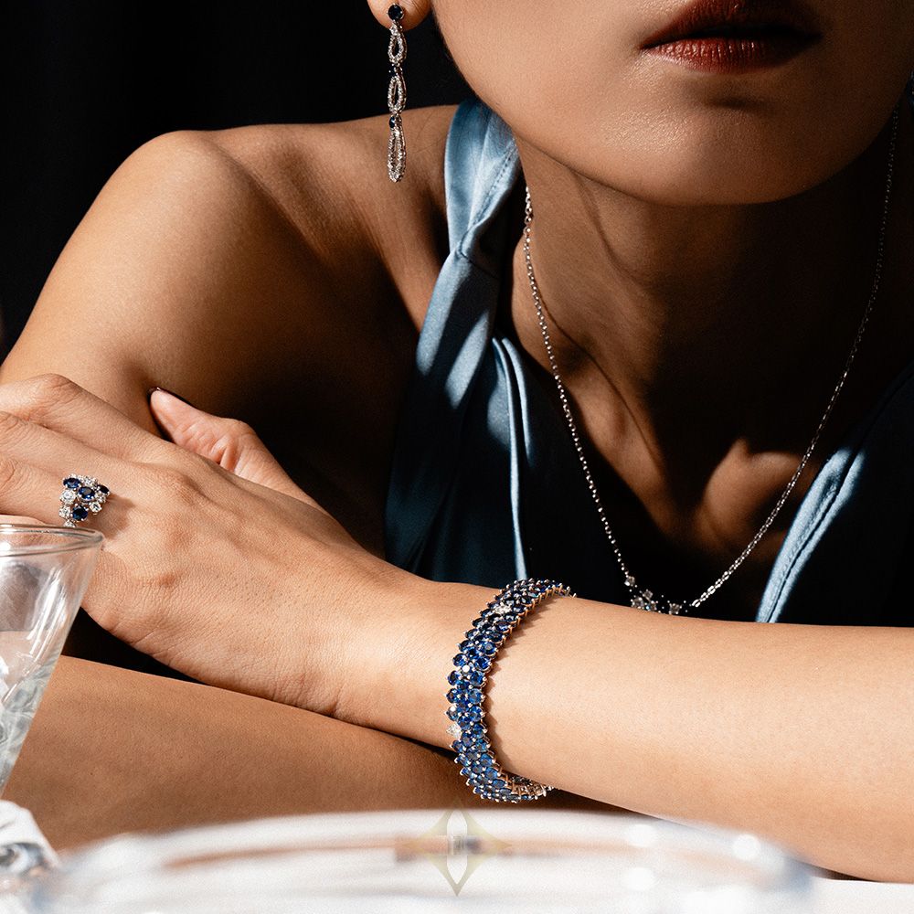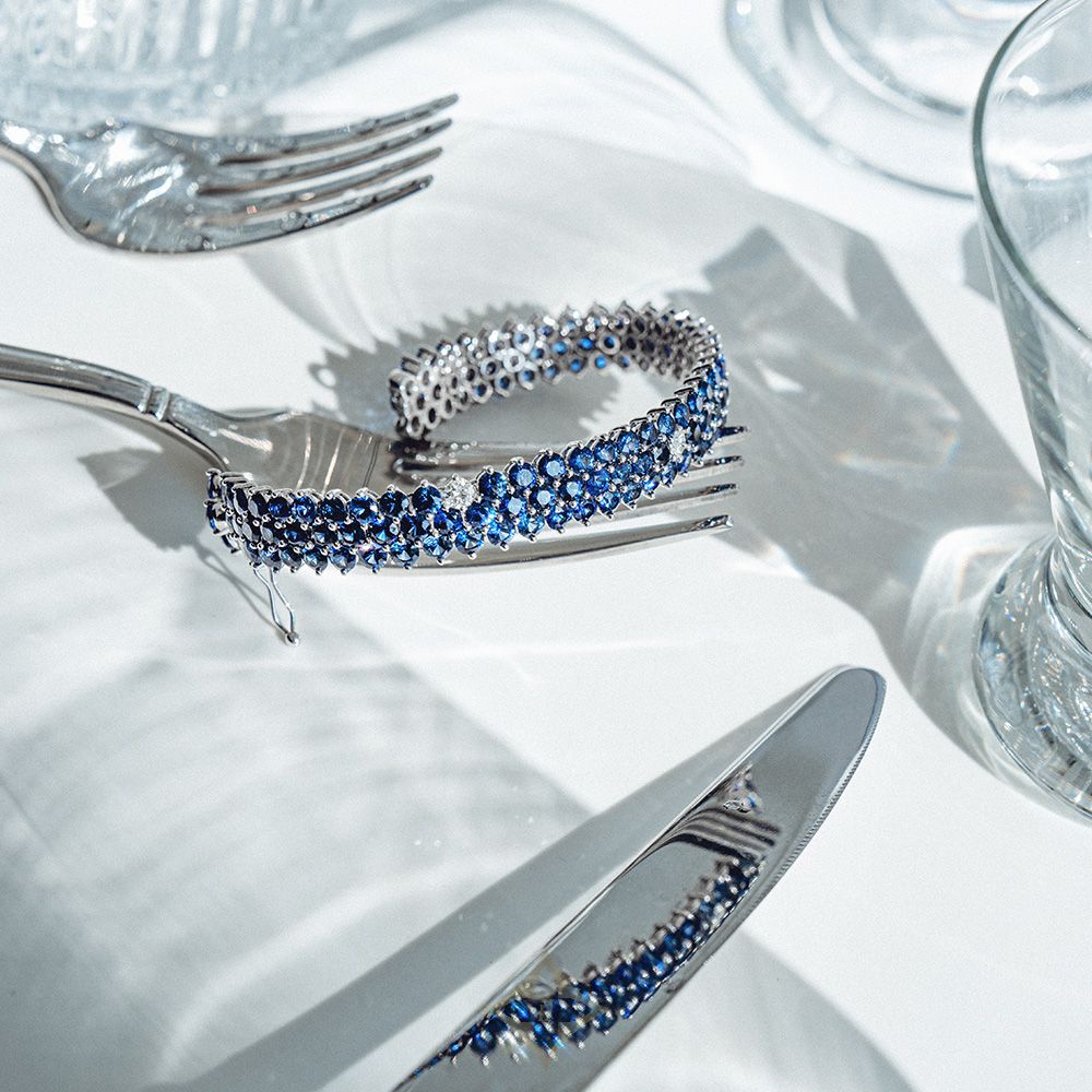 All stones are hand-set by each piece by the setting craftsman. The blue bracelet design is a bracelet design that feels the craftsmanship, originality, and the know-how of Miko House's unique atelier.