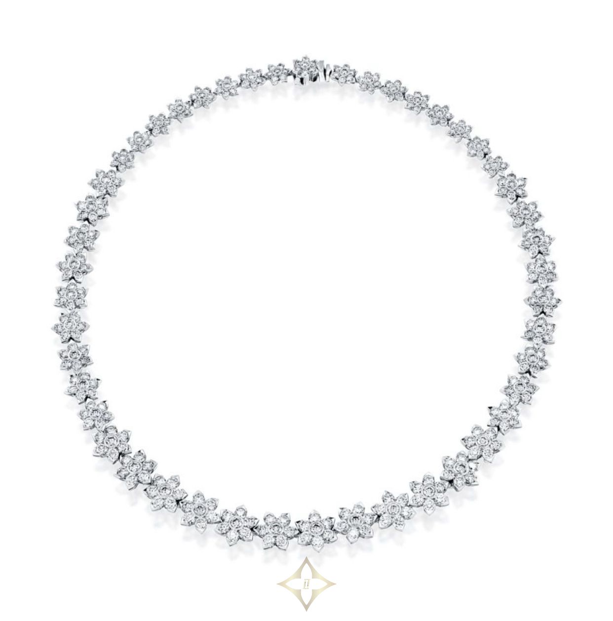 Blossom by Padani Necklace SKU296163 PRICE: $65,975 Product Description Blossom by Padani necklace in 18K white gold, set with 17.46 CT of diamonds. The Star of David Flower collection, designed by Henri Padani during the 1980s, is a timeless creation celebrating the love of the land. At first glance, it appears to be a 6-petal diamond-set flower. A second glance reveals two triangles assembling the timeless Jewish emblem of protection, the Star of David, also engraved on the backside of the pendant, symbolizing the personal and spiritual connection. The collection consists of flower-decorated rings, necklaces, earrings, and bracelets in 18K white, yellow, and rose gold, set with diamonds and gemstones. ——— PADANI (Padani Jewellers Limited, C.N 510365927) Tel Aviv - Kempinski Hotel Retsif Herbert Samuel St 64, Tel Aviv-Yafo, 6343114, Israel Phone: +972-3-541-5320