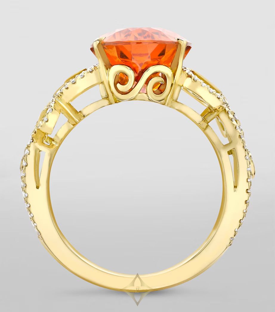 BOODLES Yellow Gold, Diamond and Garnet A Family Journey Vienna Ring PRICE: $53,900.00 Please note, this product cannot be purchased online. Boodles’ own family journey began six generations ago. The A Family Journey collection celebrates a milestone in Boodles' history; honouring the remarkable adventure Anthony Wainwright went on in 1962, it pays tribute to the tour that enabled the brand to offer jewels difficult to find anywhere else. Today, Nicholas Wainwright is taking a similar trip to commemorate 60 years since his father's journey, seeking inspiration for a new fine jewellery series in Europe's most beautiful cities. The stunning oval mandarin garnet at the fore of the Vienna ring needs no introduction, so instead, let us turn your attention to the diamond-encrusted spiral motifs – designed to be reminiscent of Kilmt’s *Tree of Life*. Details CASE 9.45ct mandarin garnet; diamonds (total weight: 0.59ct) Presented in a Boodles box Model number: 11142000GGOY Composition OUTER: 100% 18kt Yellow Gold ——— Harrods Harrods, 87-135 Brompton Rd, London, SW1X 7XL, UK Phone: +44 20 7730 1234 WhatsApp: +44 7860 019465 Email: customer.service@harrods.com