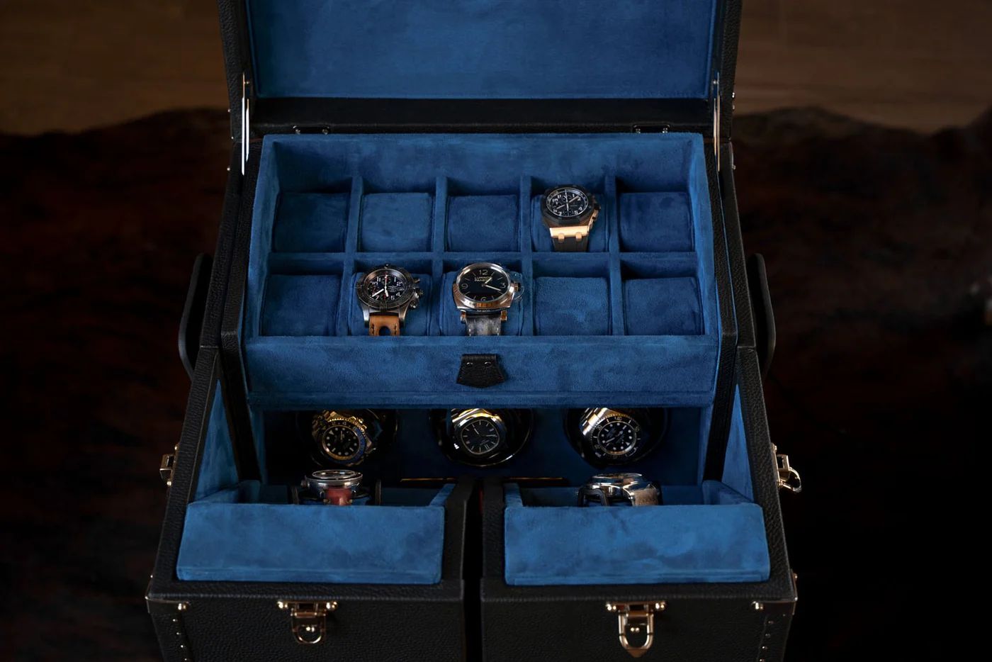 Bosphorus Leather's 100% leather Watch Winder Trunks are designed to be an impeccable and ostentatious living space for all your accessories.
