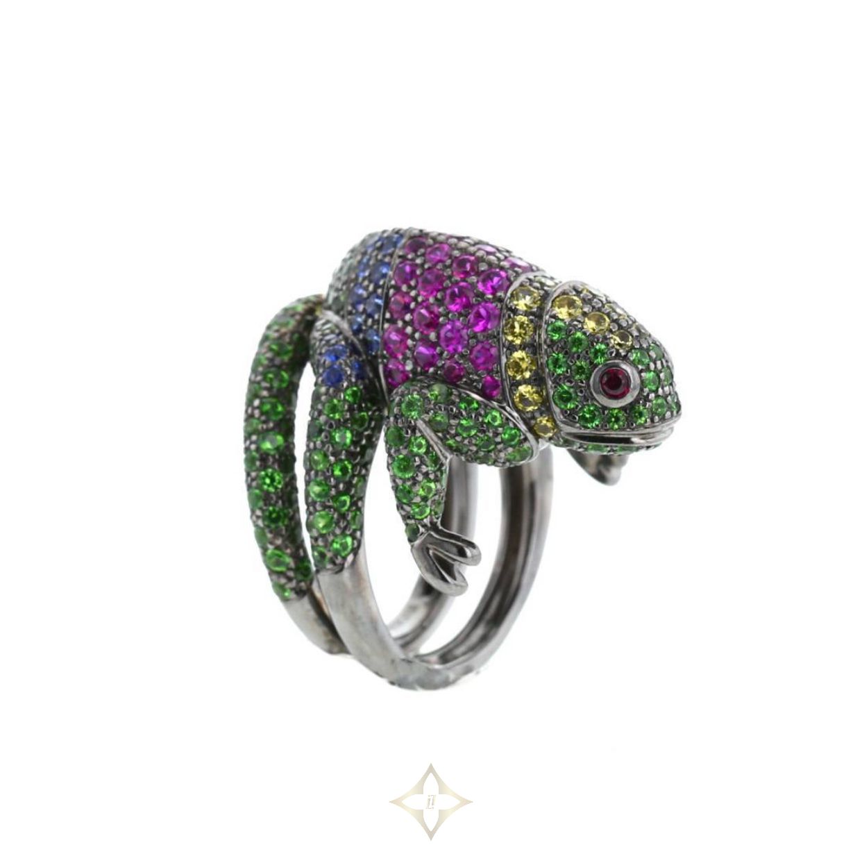 Boucheron Masy, le Caméléon ring in blackened gold, sapphires, rubies and tsavorites | Paris 🇫🇷