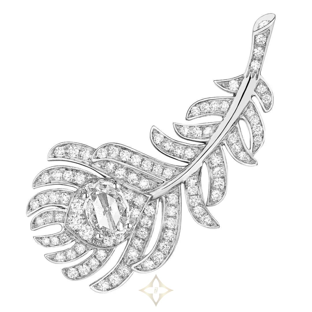 These Plume de Paon earrings in 18 karat white gold set with 0.67 carat diamonds and featuring 2 rose cut diamonds (0.52 carat) surprise by originality and excellent craftsmanship.
