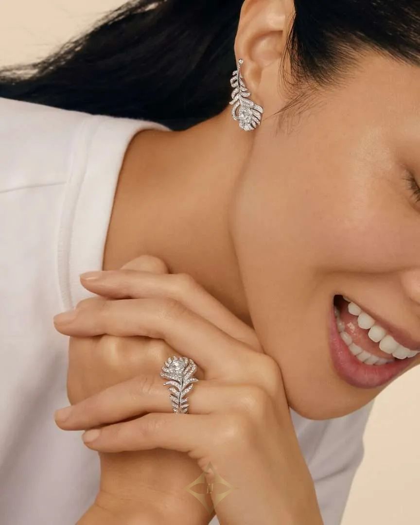 BOUCHERON PLUME DE PAON EARRINGS 18 KARAT WHITE GOLD