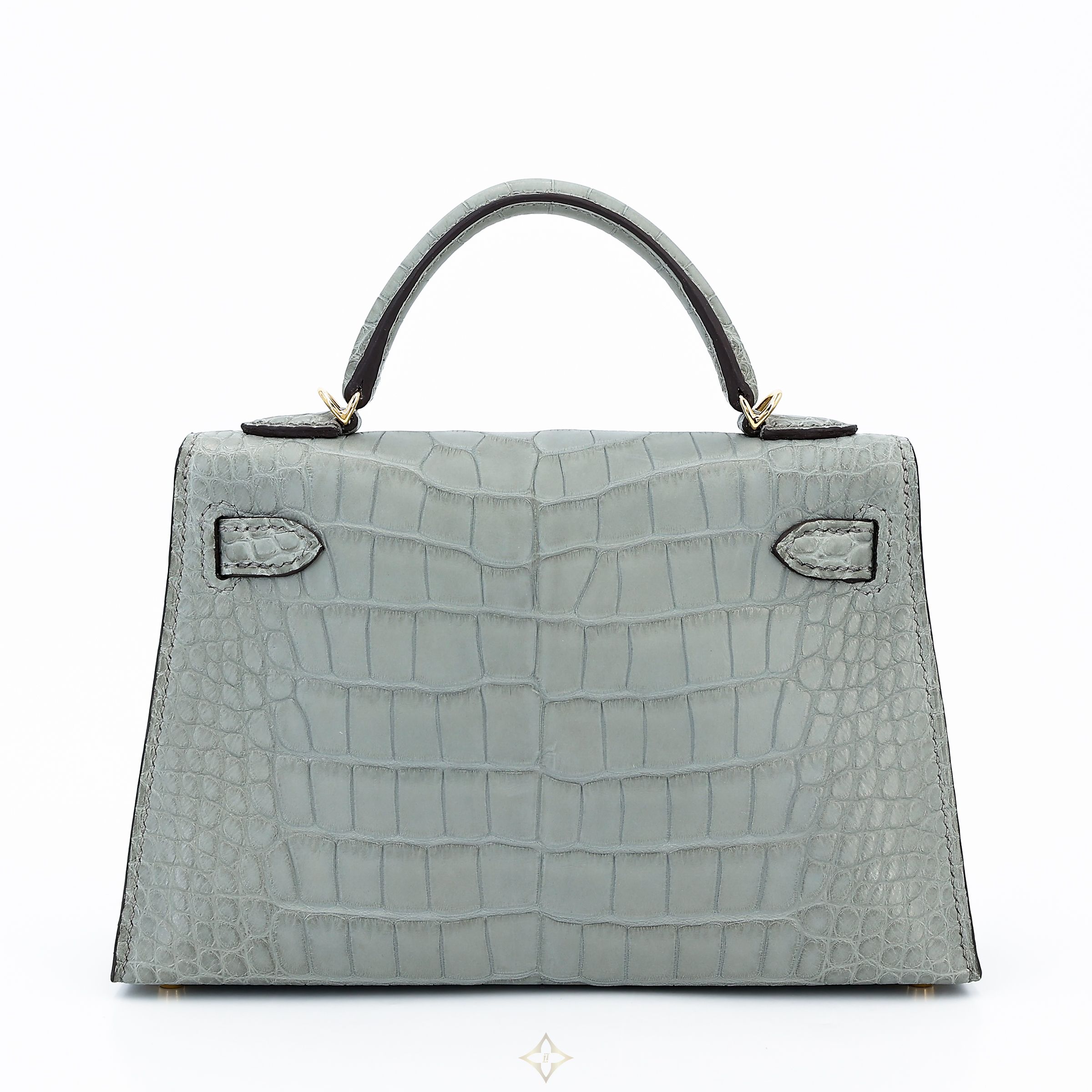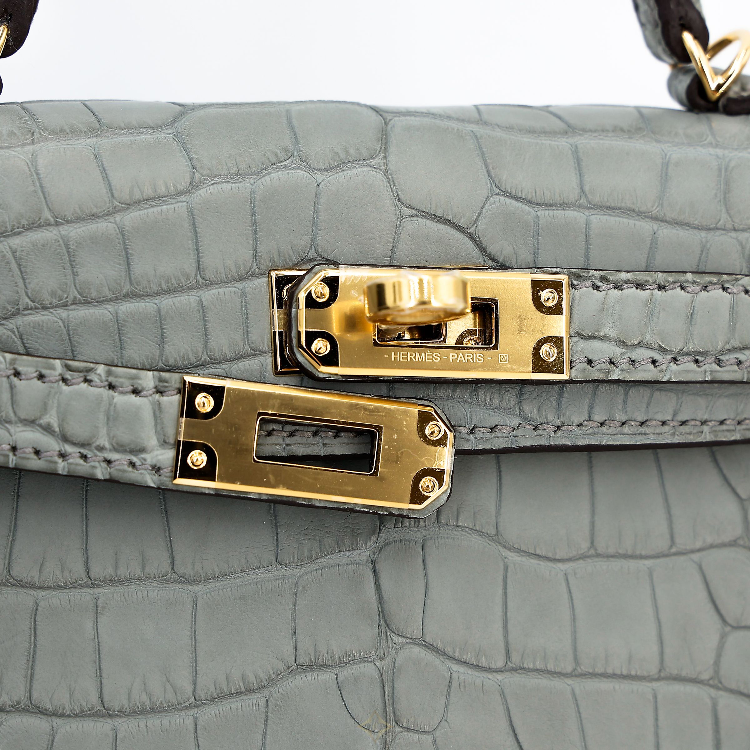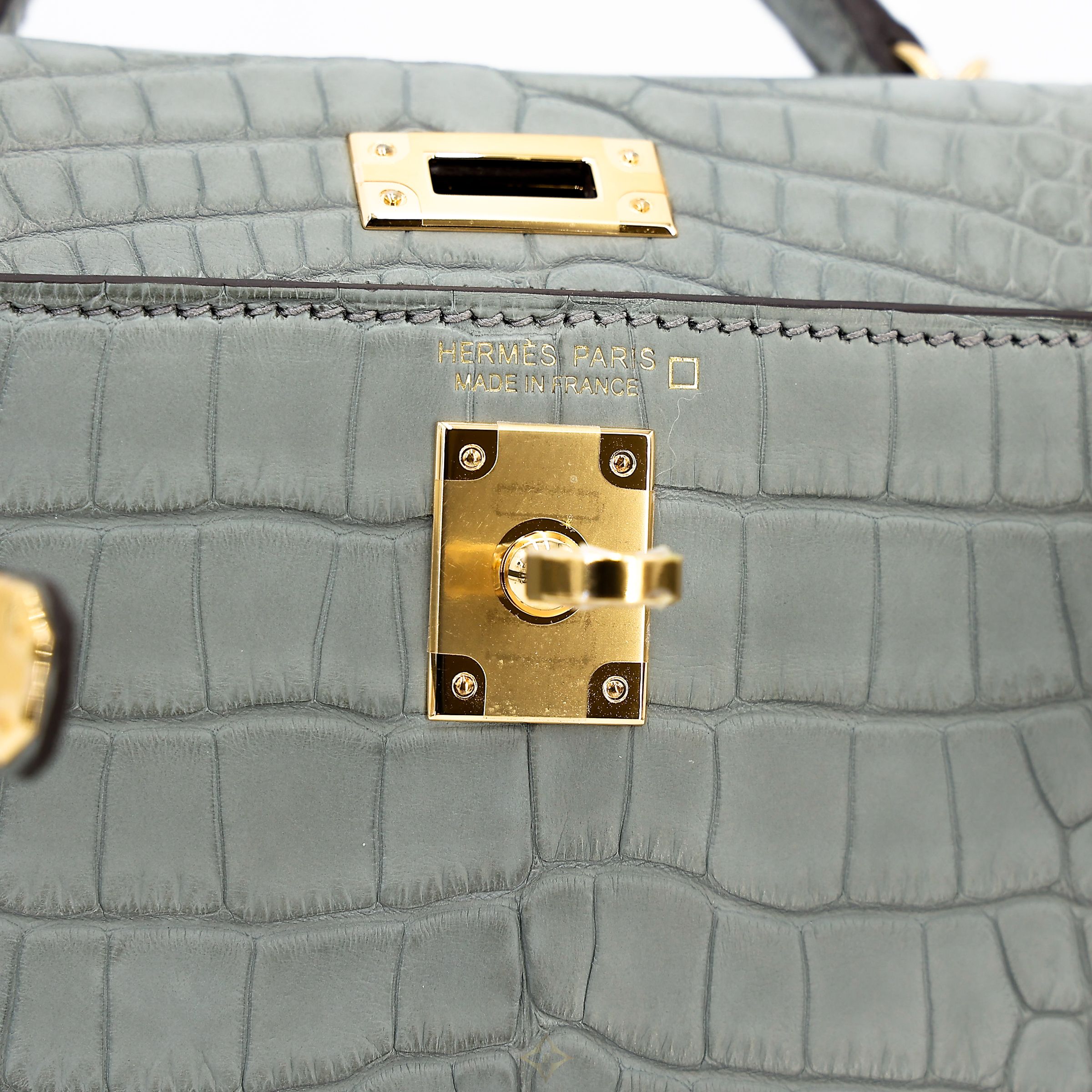 Brand New HERMÈS Mini Kelly II Gris Ciment Matte Alligator Gold hardware W (2024) | Hong Kong 🇭🇰