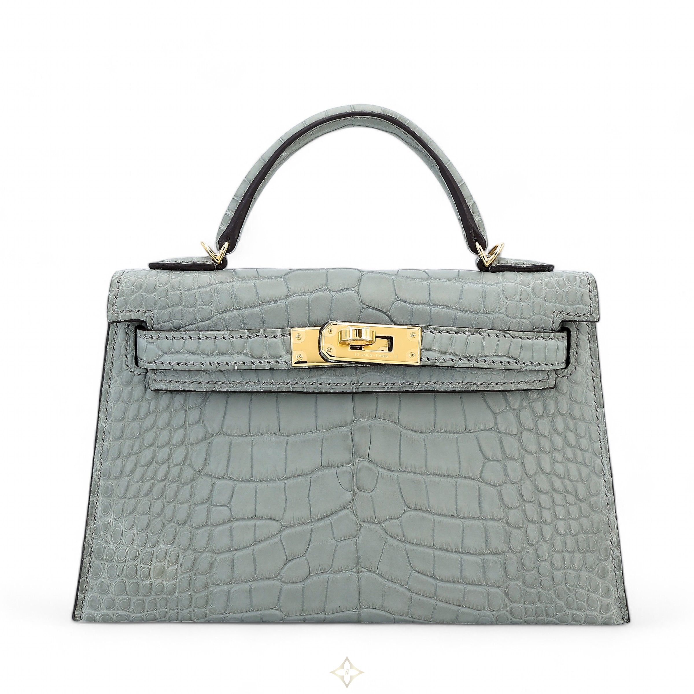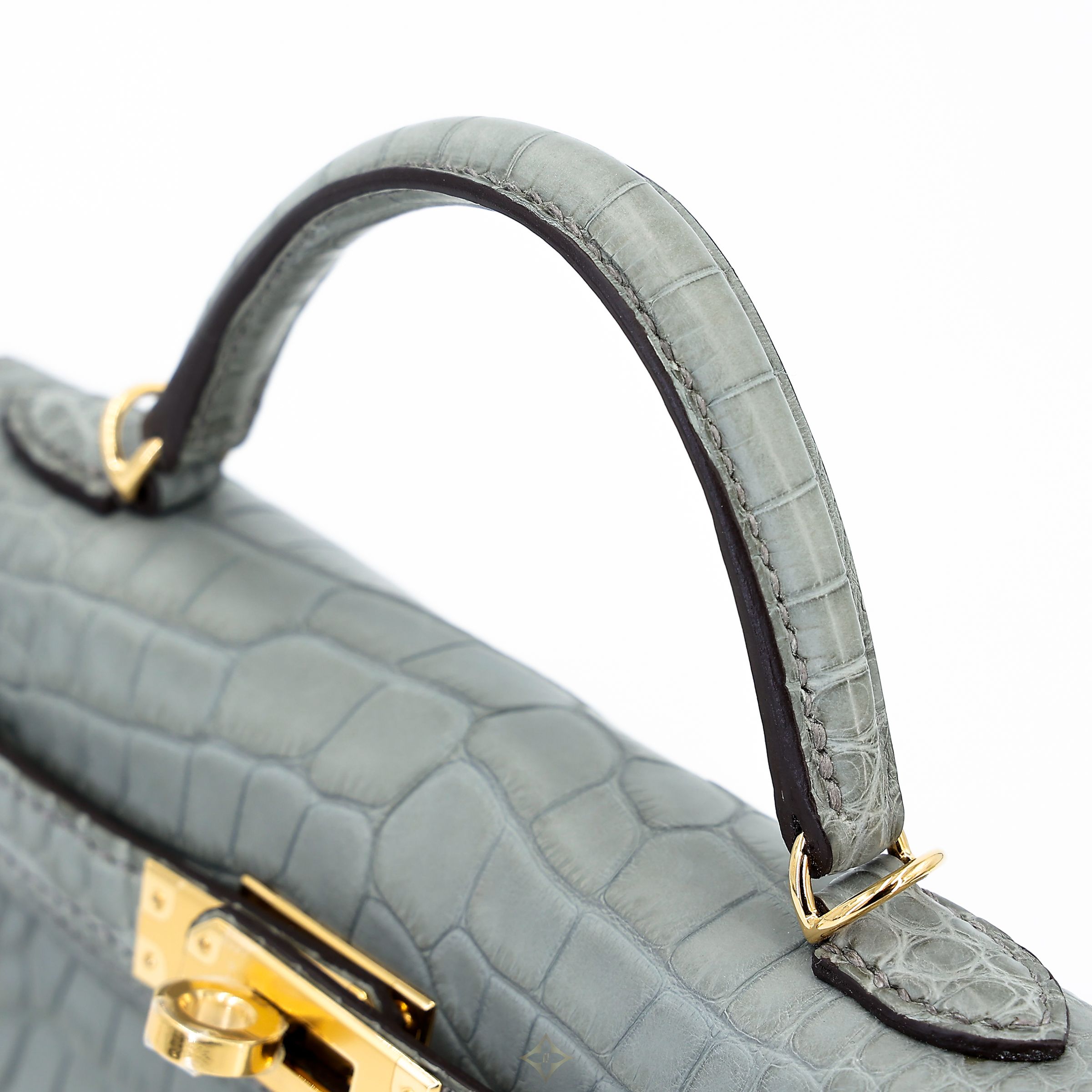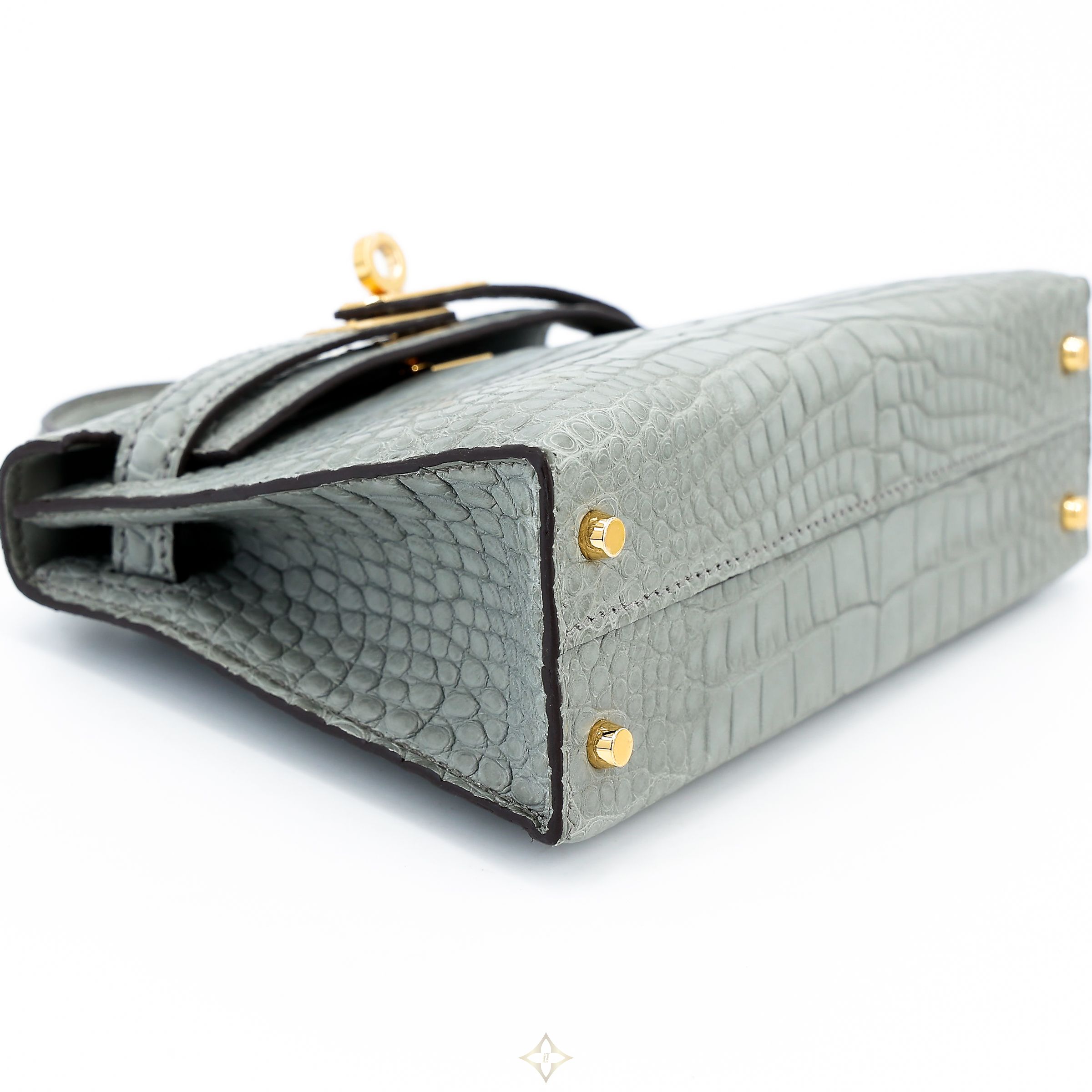 Brand New HERMÈS Mini Kelly II Gris Ciment Matte Alligator Gold hardware W (2024) | Hong Kong 🇭🇰