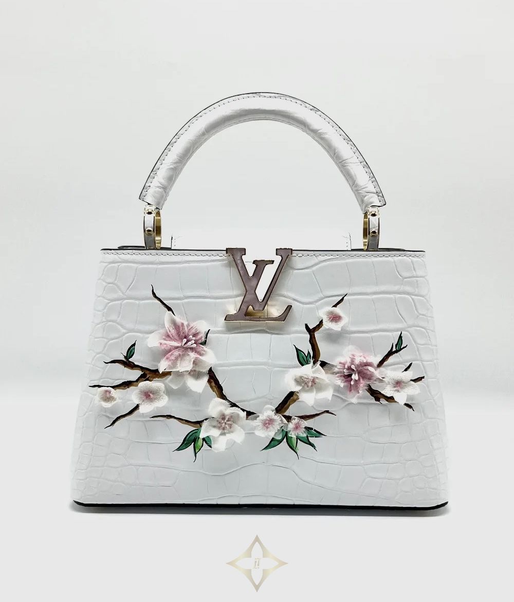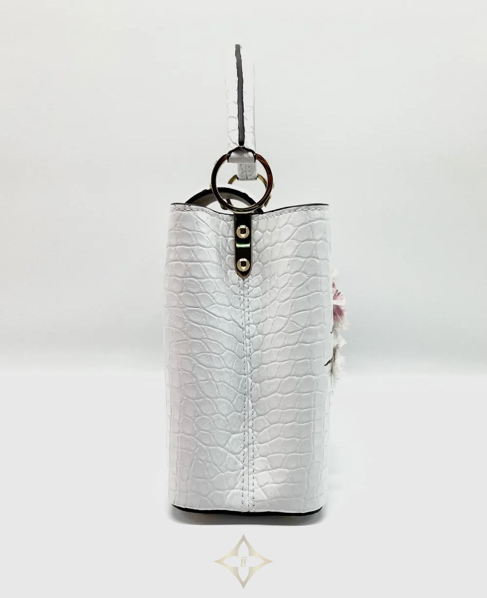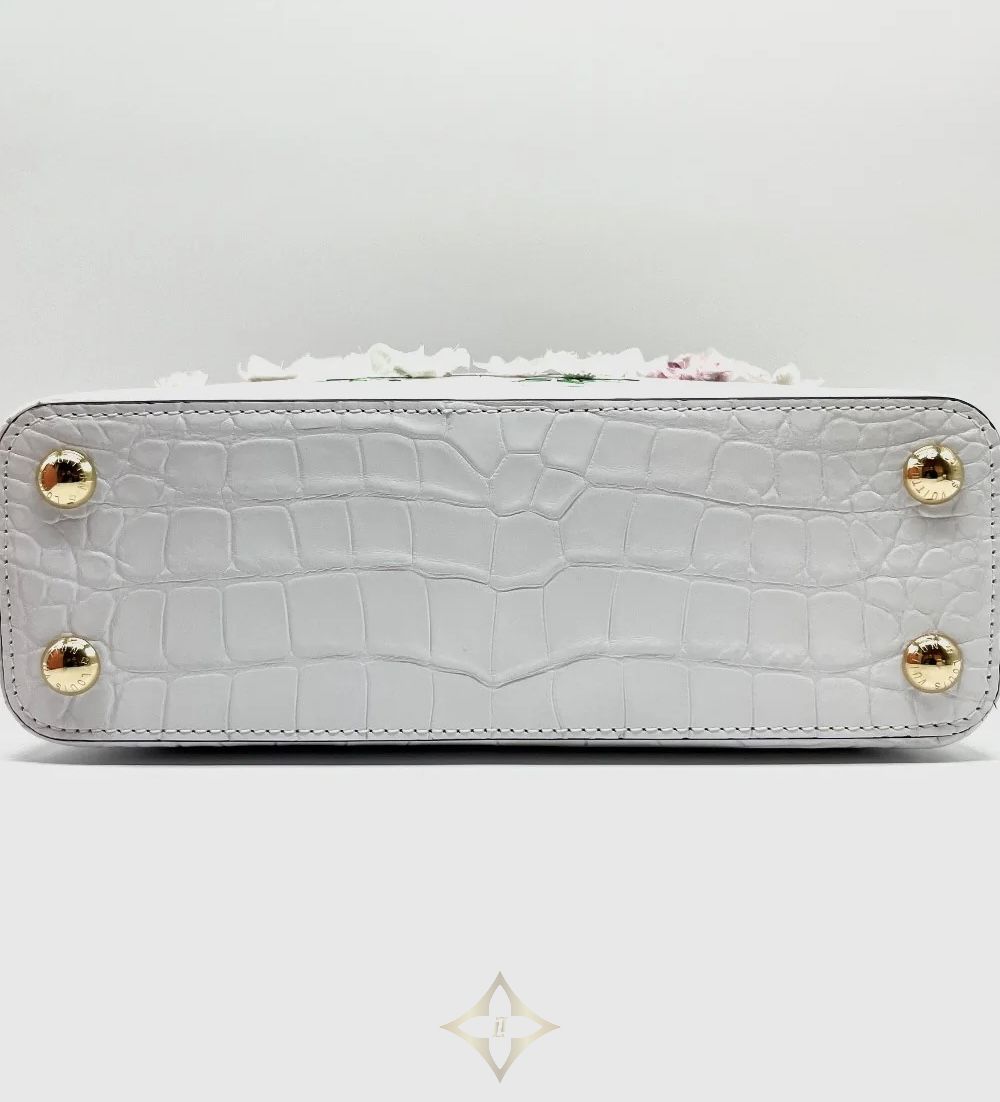 Brand New. LV Capucines BB Cherry Blossom Alligator White. MCHIP Art: 0004ZZ PRICE: ₱1,998,000.00 Description CITES, Strap, Booklet, Gloves, Ribbon, Tags, Raincoat, Dustbag, Box, Paperbag ——— THE ORANGE BOX 2F, Verve Tower 2 ,One Park Drive 11th Drive Corner 9th Ave, Bonifacio Global City, Taguig City 1635, Philippines Phone: +63 2 8643 7840 Email: theorangeboxph@gmail.com