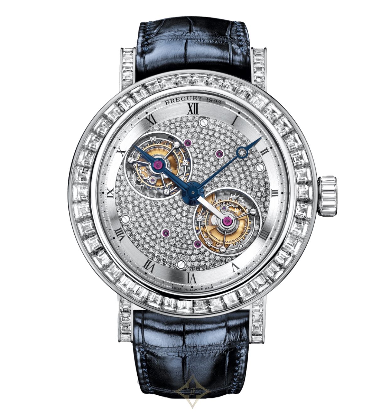 Breguet Classique Grande Complication Double Tourbillon Manual 50 mm 5349PT/11/9YV/DD0D PRICE: £794,167 (Ex VAT £661,806) Retail Price (EU): £982,393 (saving up to 19 %) DETAILS Warranty: 2 years Country of Manufacture: Switzerland Case material: Gemstones, Platinum Case diameter (mm) : 50 mm Case Shape: Round Thickness (mm): 18.65 mm Waterproof: 30 meters / 3 ATM Dial: Silver dial & diamonds Movement: Manual winding Movement Calibre: 588 Power Reserve (h): approx. 50 hours when fully wound No. of Jewels: 81 jewels Frequency: 18'000 v.p.h., 2.5 Hz Strap material: Blue alligator leather Clasp (Buckle): Folding Clasp Buckle Material: Platinum Description Breguet Classique Grande Complication Double Tourbillon Manual 50 mm watch. Model reference: 5349PT/11/9YV/DD0D. The platinum case is set with 107 baguette-cut diamonds. Sapphire caseback. Silver dial set with 310 diamonds. Manual-winding movement. Blue alligator leather strap. Swiss made. The watch comes in the original packaging, with a set of documents and 2 years warranty. At Watches of Mayfair we offer new authentic watches at the best prices. ——— Watches of Mayfair Ltd London Concept Boutique BOUTIQUE ADDRESS 13 Shepherd Market, Mayfair, London, W1J 7PQ, UK Phone: +44 20 7629 5055 WhatsApp: +44 7917 880801 EMAIL: sales@watchesofmayfair.com