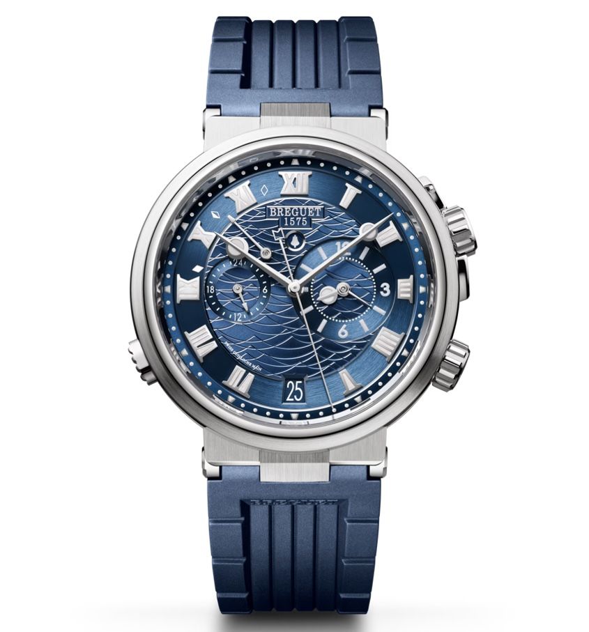 A 12-hour counter placed at 3 o’clock indicates the time chosen for the alarm. A marine bell, a subtle reference to the universe of the collection, is displayed in an aperture at 12 o’clock when the alarm is activated. Its power reserve is discreetly visible between 9 and 12 o’clock. When the timepiece is fully wound, the arrow points to the thoroughly coloured indication at 9 o’clock. The counter located at 9 o’clock displays the second time zone. To enable greater legibility, during the day and at night, the hands and the indications are luminescent.