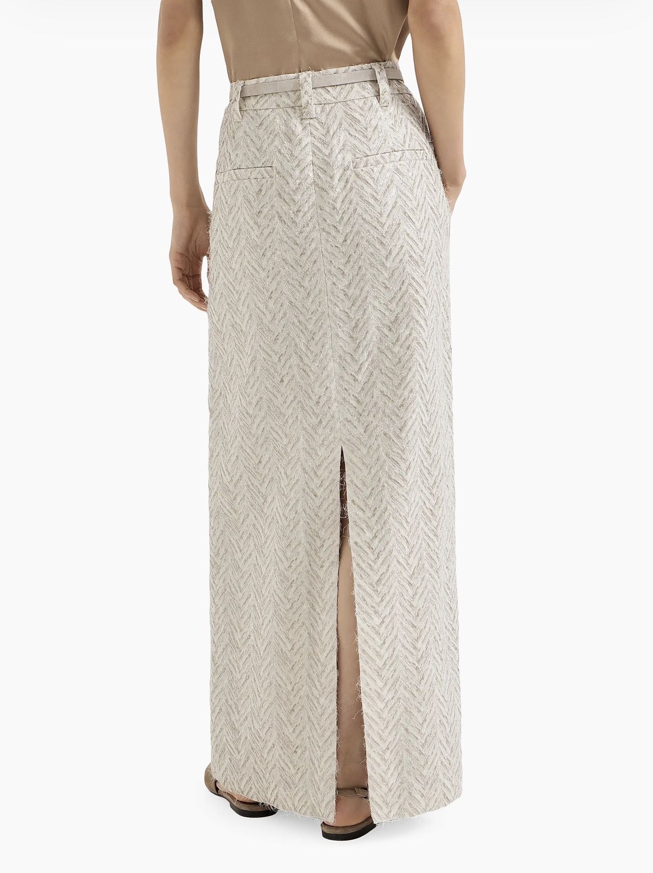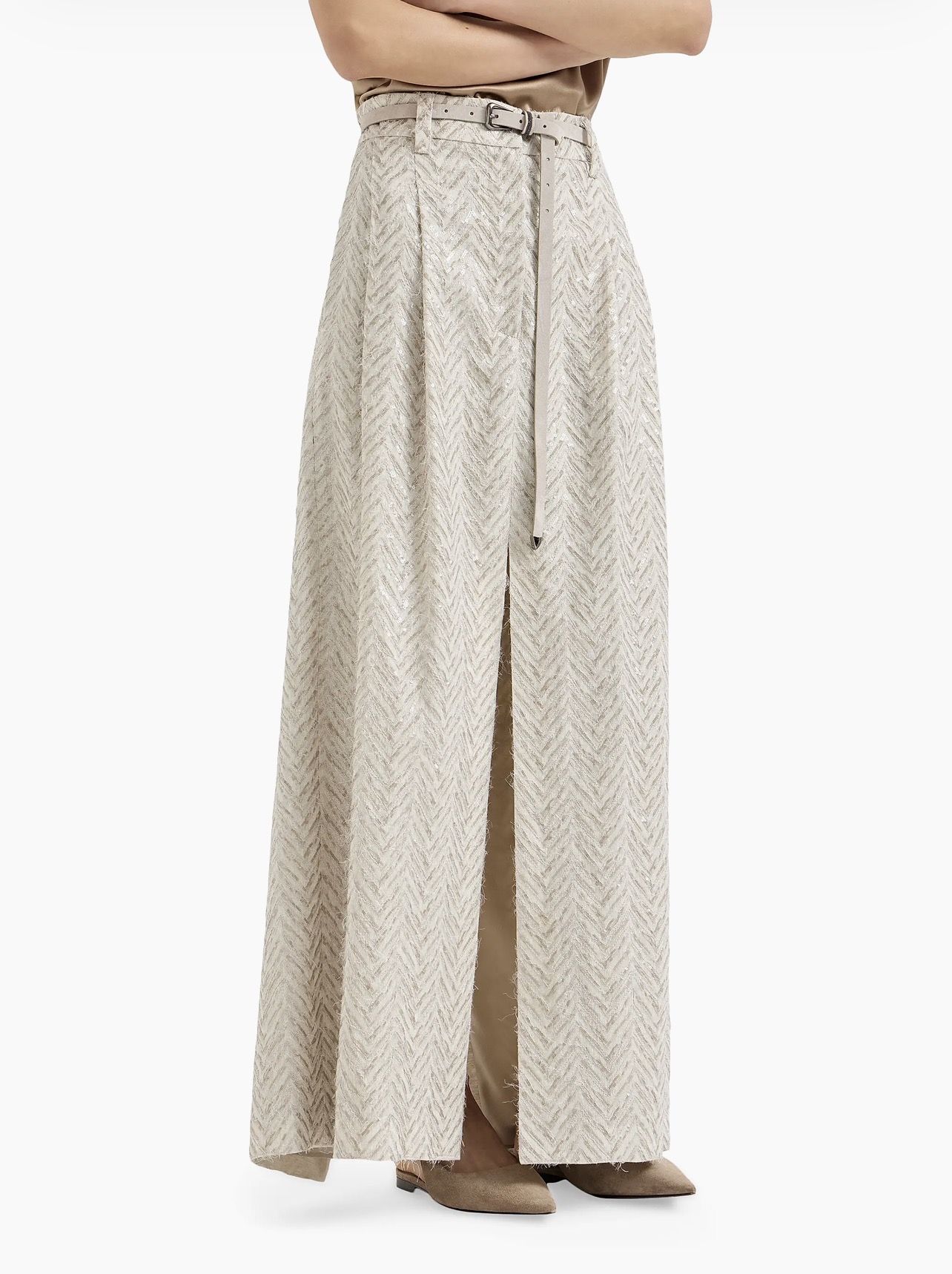 Dazzling maxi chevron embroidery sartorial skirt in linen.