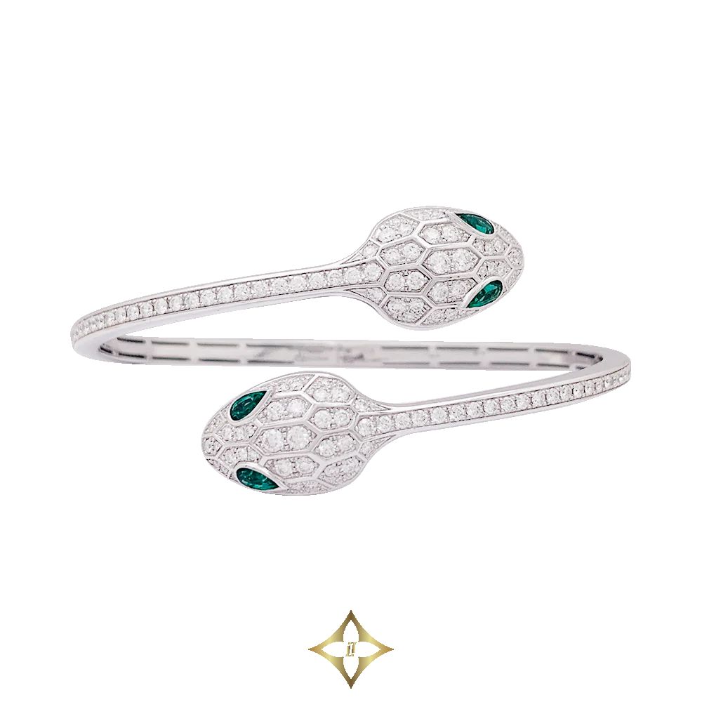 BULGARI “SERPENTI SEDUTTORI” BRACELET IN WHITE GOLD, DIAMONDS, EMERALDS for Sale | Paris 🇫🇷