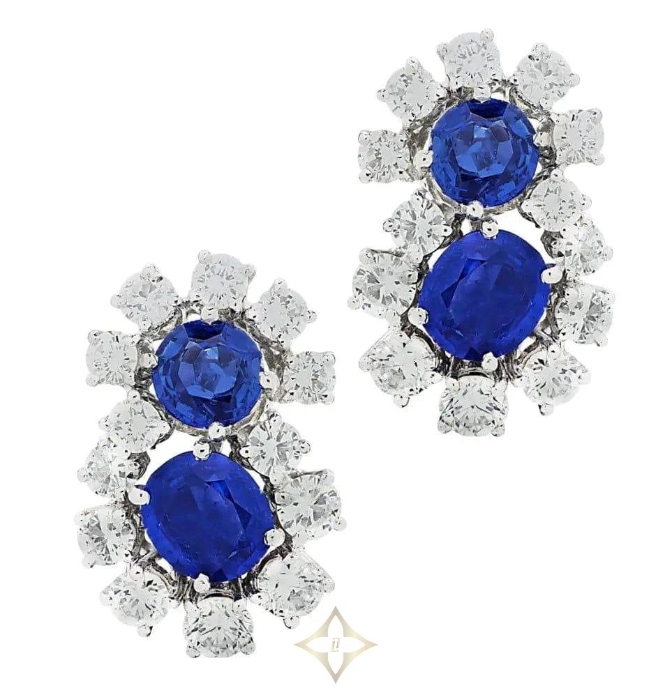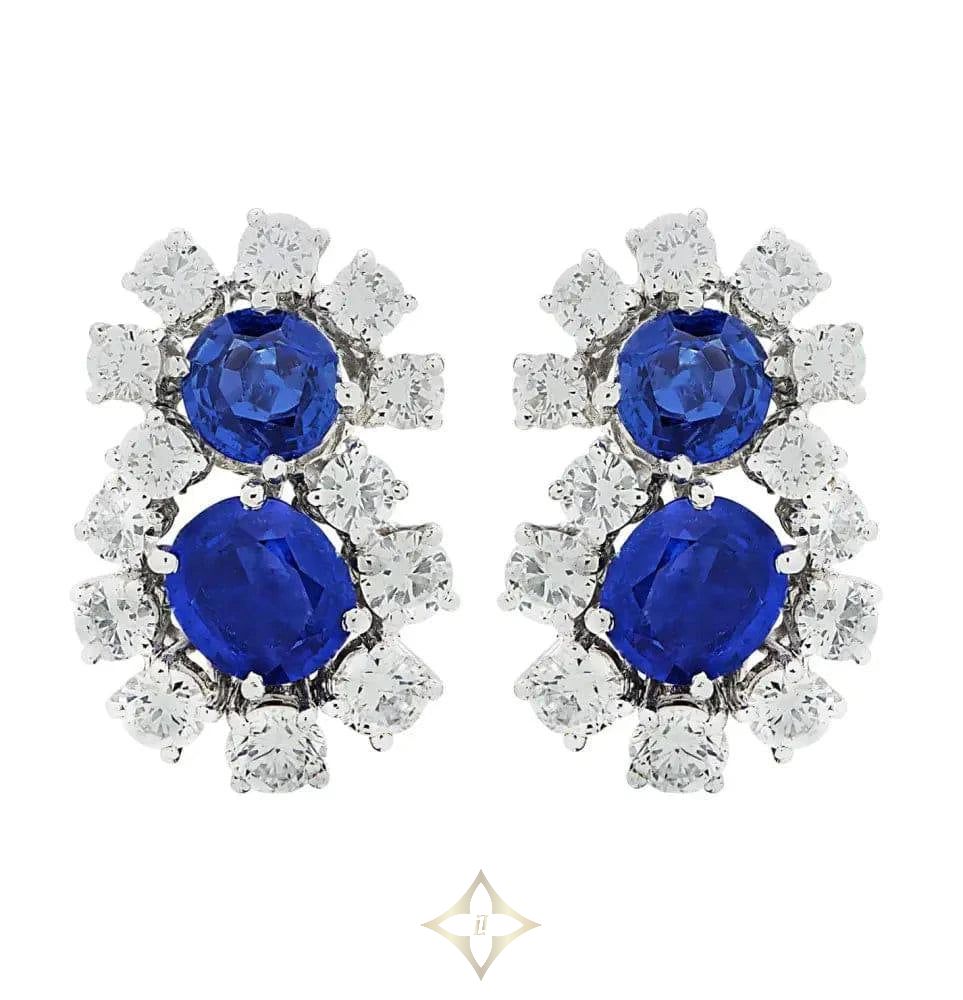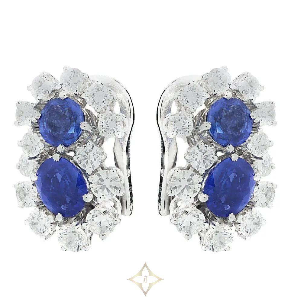 Featuring 4 Burma No Heat Sapphires totaling 4 carats, the ear clips are surrounded by 2.25 carats of diamonds, adding a dazzling finish to the suite. Perfect for framing the face with understated elegance, these ear clips provide the ideal complement to the boldness of the necklace and bracelet.