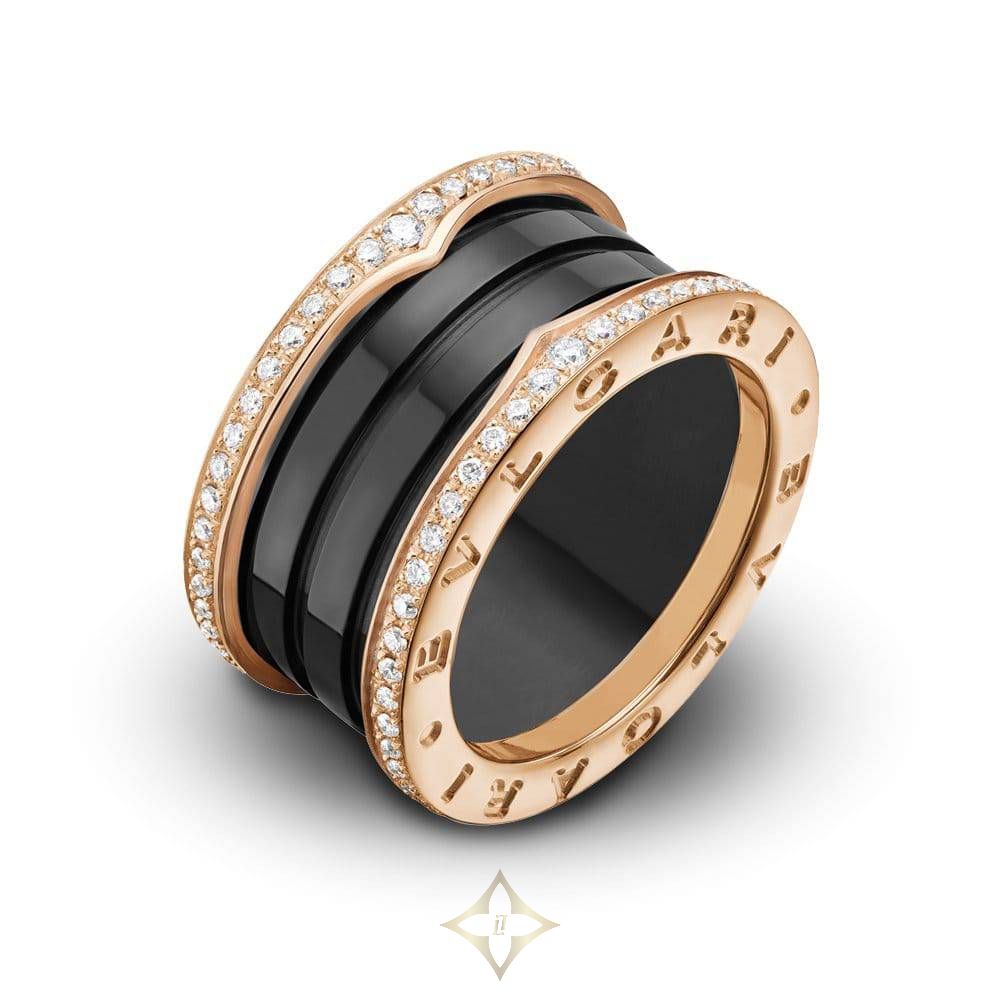 Bvlgari B.Zero1 18ct Rose Gold & Black Ceramic Four Band Diamond Edge Set Ring, 349933