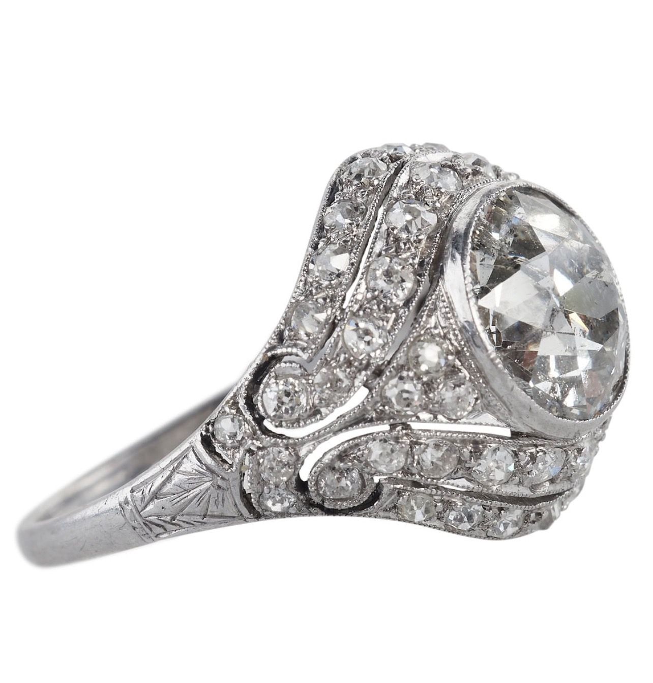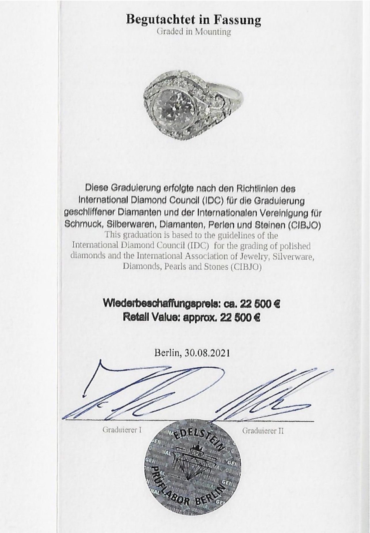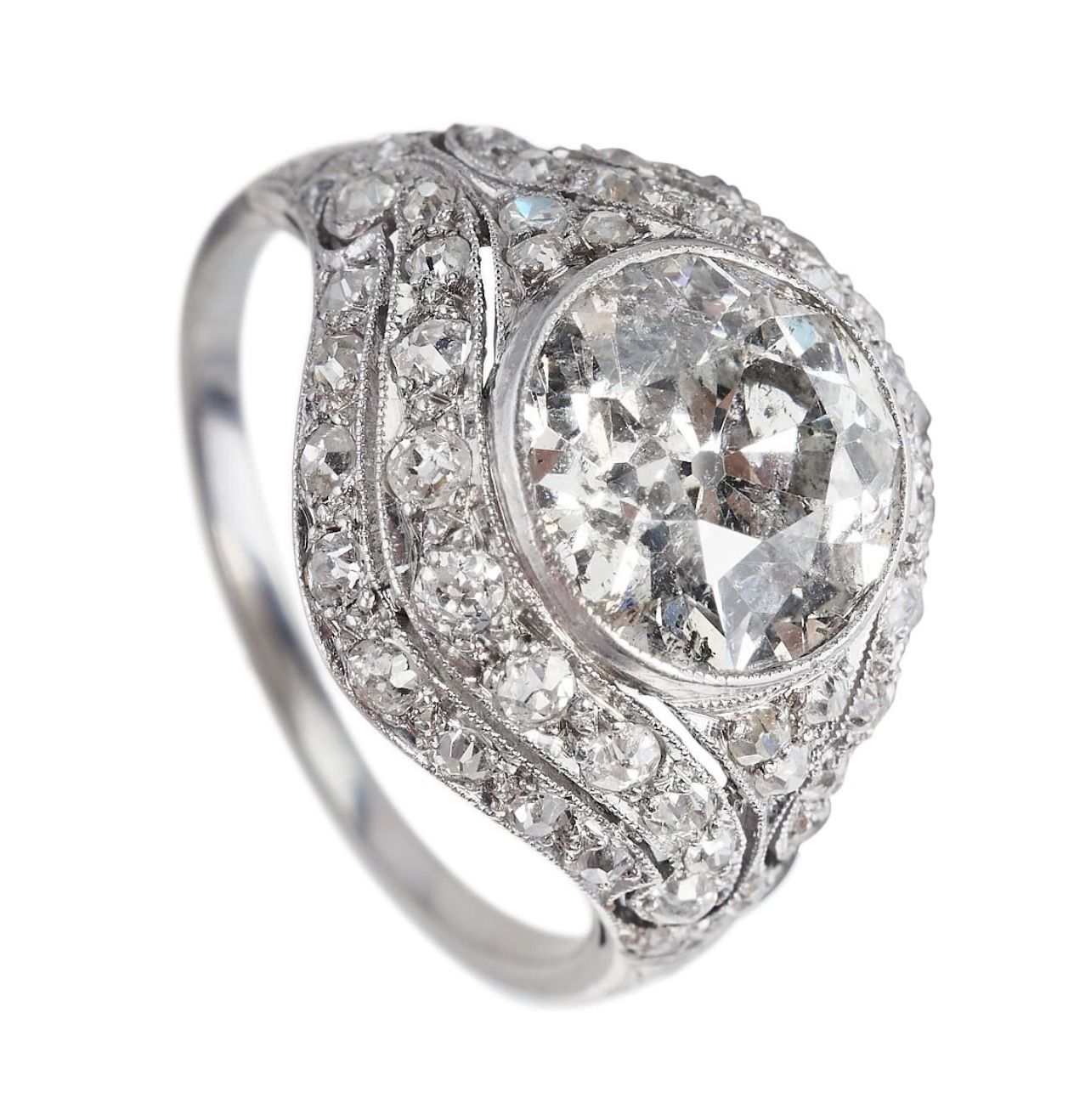 CA. 1930 – ART DÉCO DIAMONDSRING OF 950 PLATINUM, INCL. GEMSTONES CERTIFICATE!