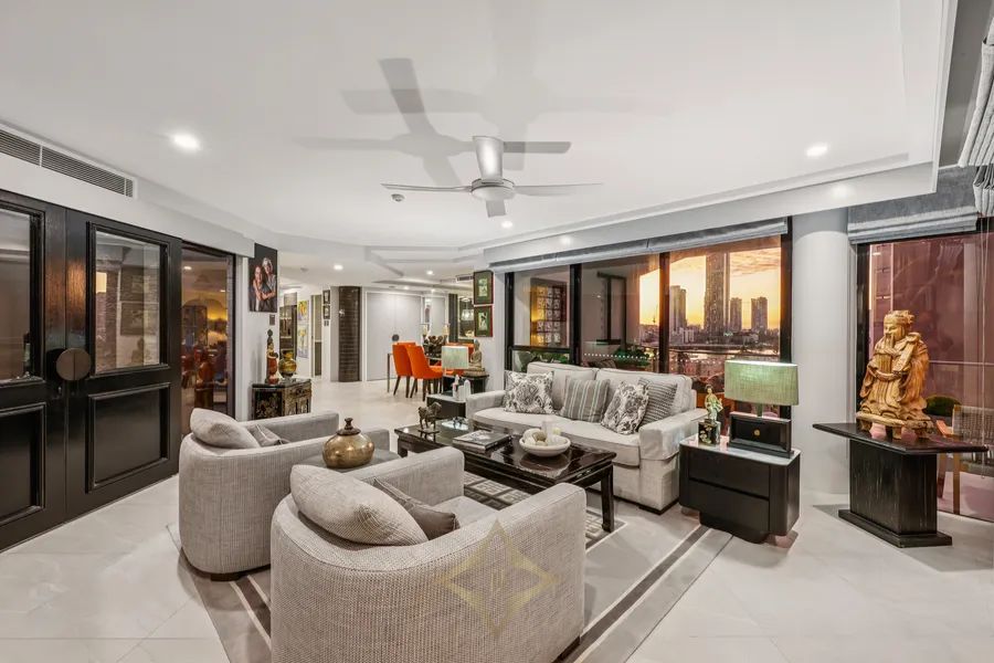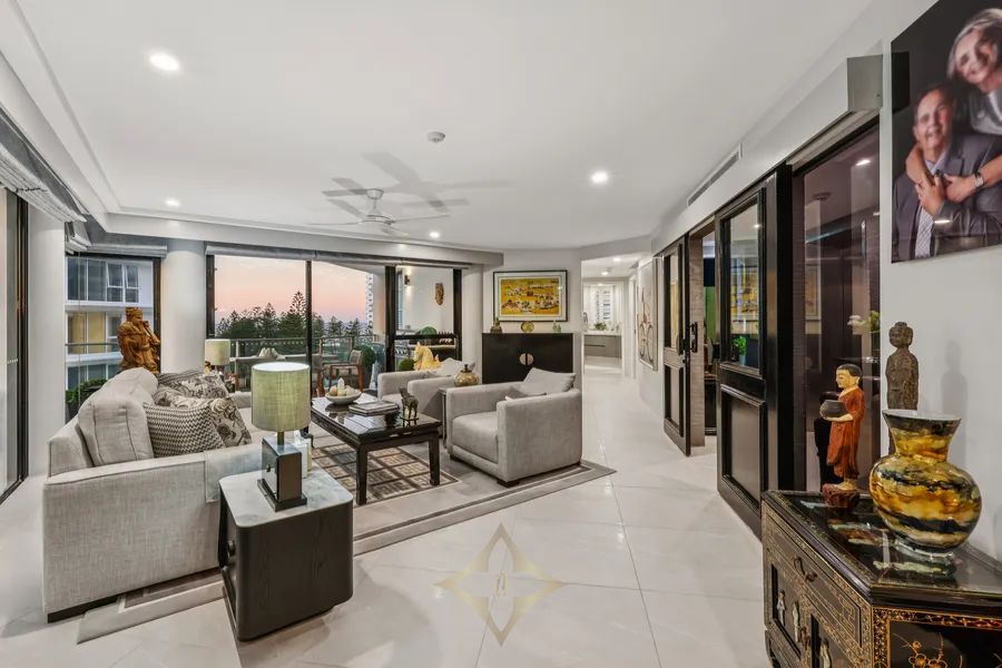 Rising above the golden foreshore and sparkling skyline, this sprawling, impeccably renovated residence delivers an extraordinary blend of Manhattan refinement and coastal serenity, right in the heart of Main Beach. Occupying an entire level of the boutique Calais building, Apartment 9 offers panoramic 360-degree views spanning the ocean, hinterland and city lights - creating a captivating backdrop from every room.
