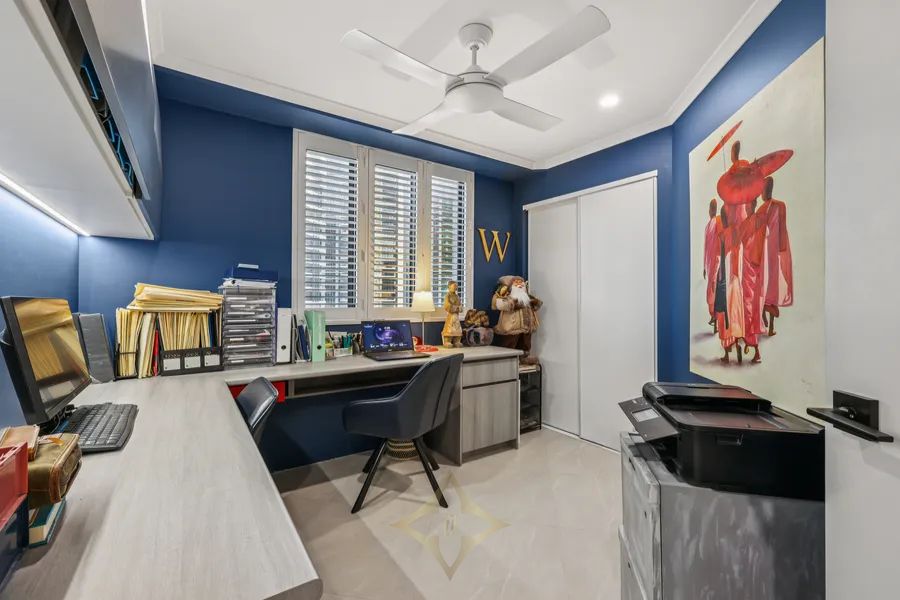 The grand primary suite is a sanctuary of luxury, enjoying dramatic skyline vistas, a resort-style ensuite with floating bath and an enviably generous walk-in robe. Positioned at the opposite end of the home, two additional bedrooms offer peace, privacy and supreme comfort for family or guests.