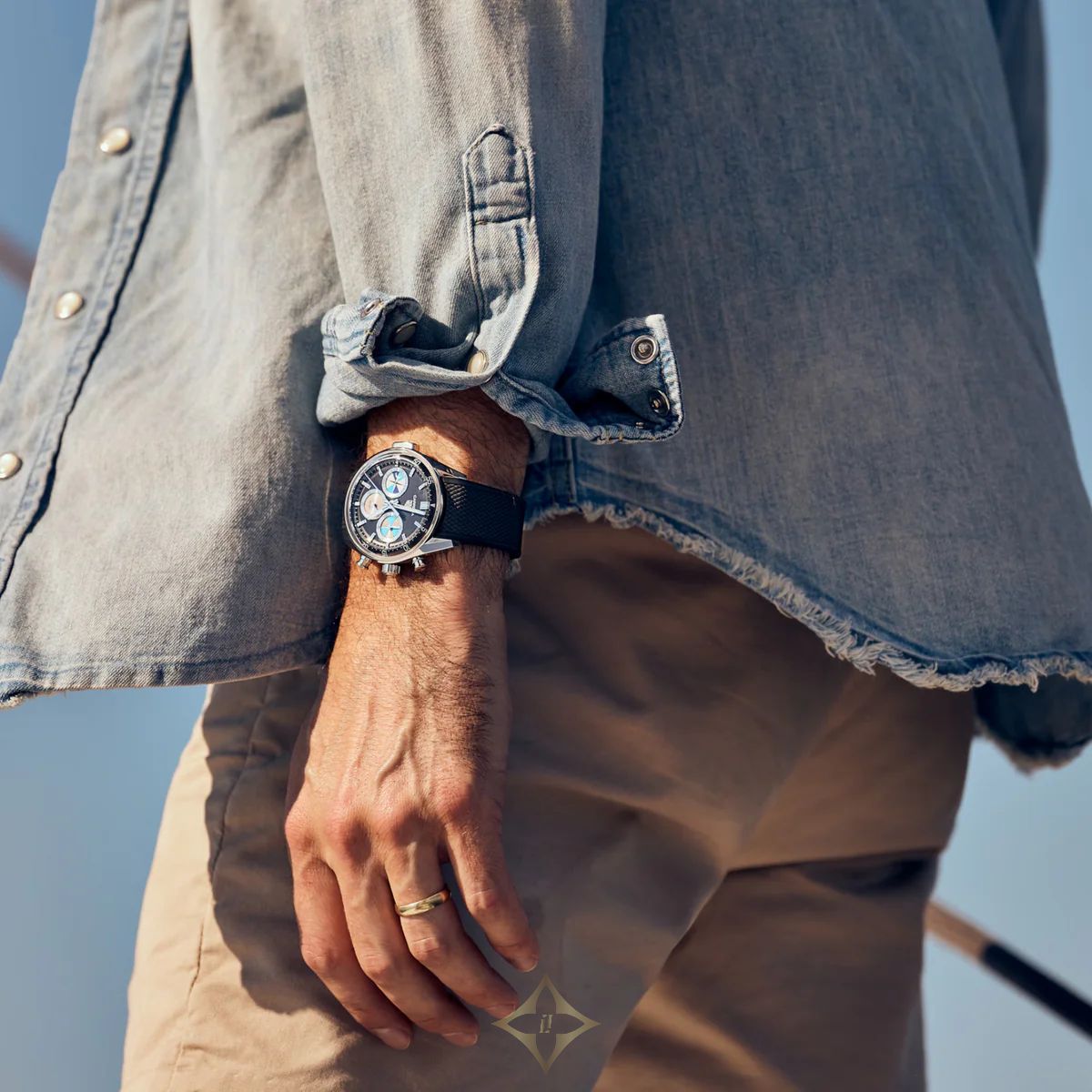 Introducing the TAG Heuer Carrera Chronograph Seafarer x Hodinkee, a limited edition masterpiece blending timeless design with modern precision. This 42mm stainless steel chronograph features a meticulously crafted black opaline dial with striking blue accents, inspired by the 1968 Heuer Seafarer.
