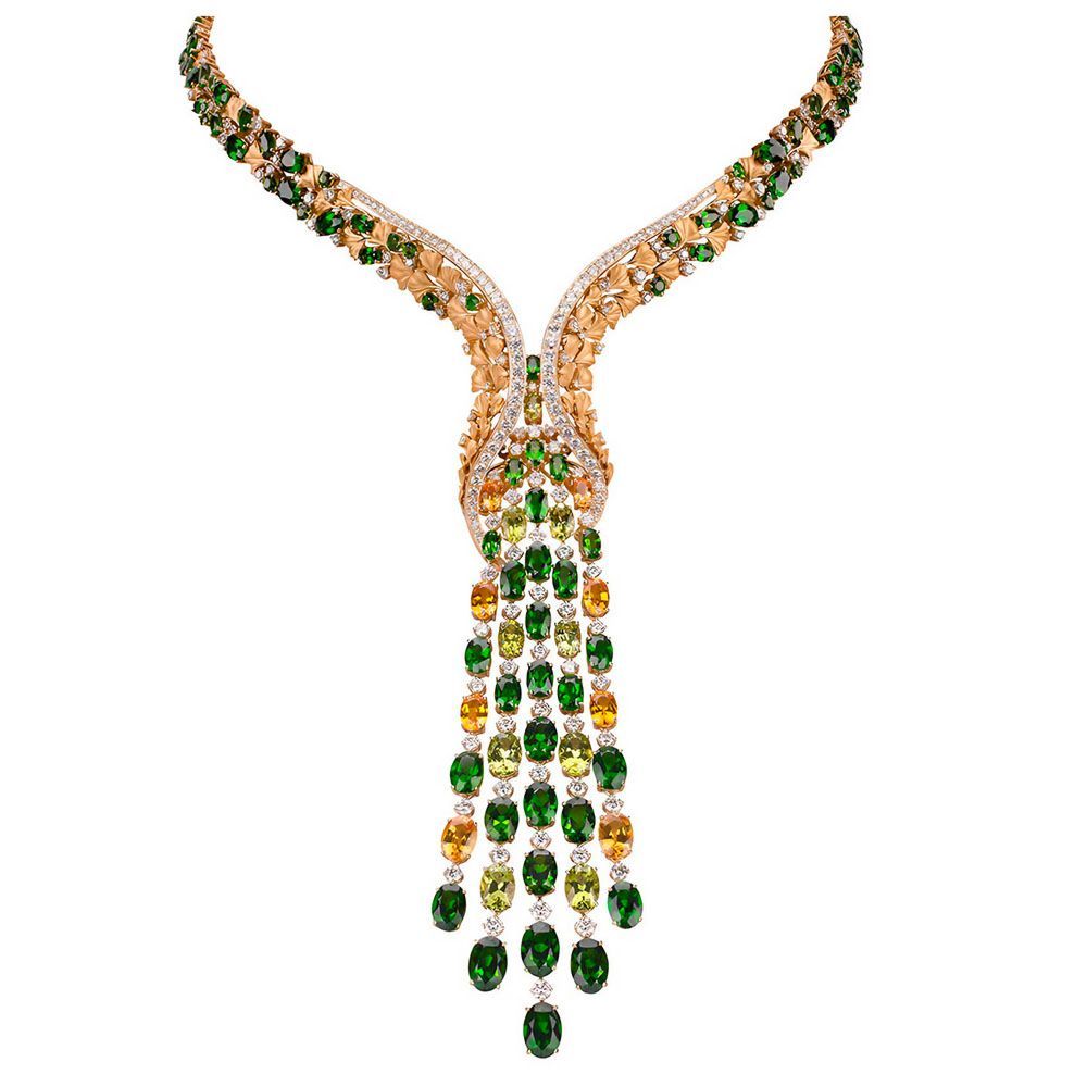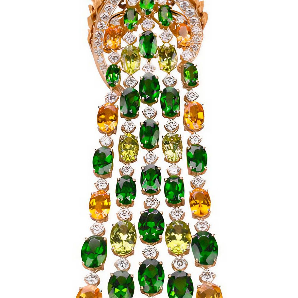 CARRERA Y CARRERA Pendant Cibeles PRICE: €106,800.00 Product code: CC-2146.1 Availability: Available DESCRIPTION NECKLACE CIBELES 18KT YELLOW GOLD, DIAMONDS, DIOPSITES, PERIDOTES AND YELLOW SAPPHIRES Gold: 68.464 Gr Peridote: 5.328 Cts (Q.9) Diamonds: 8.765 Cts (Q.273) Blue Sapphires: 5.320 Cts (Q.8) Chromo Diopside: 37.267 Cts (Q.123) DETAILS Brand: Carrera Y Carrera Country of origin: Spain Precious stone: Diamond, Peridot, Sapphire ——— BREGNER Luxury & Lifestyle BREGNER Store Kurfürstendamm 63, 10707 Berlin, Germany Email: service@bregner.com Phone: +49 30 80908198