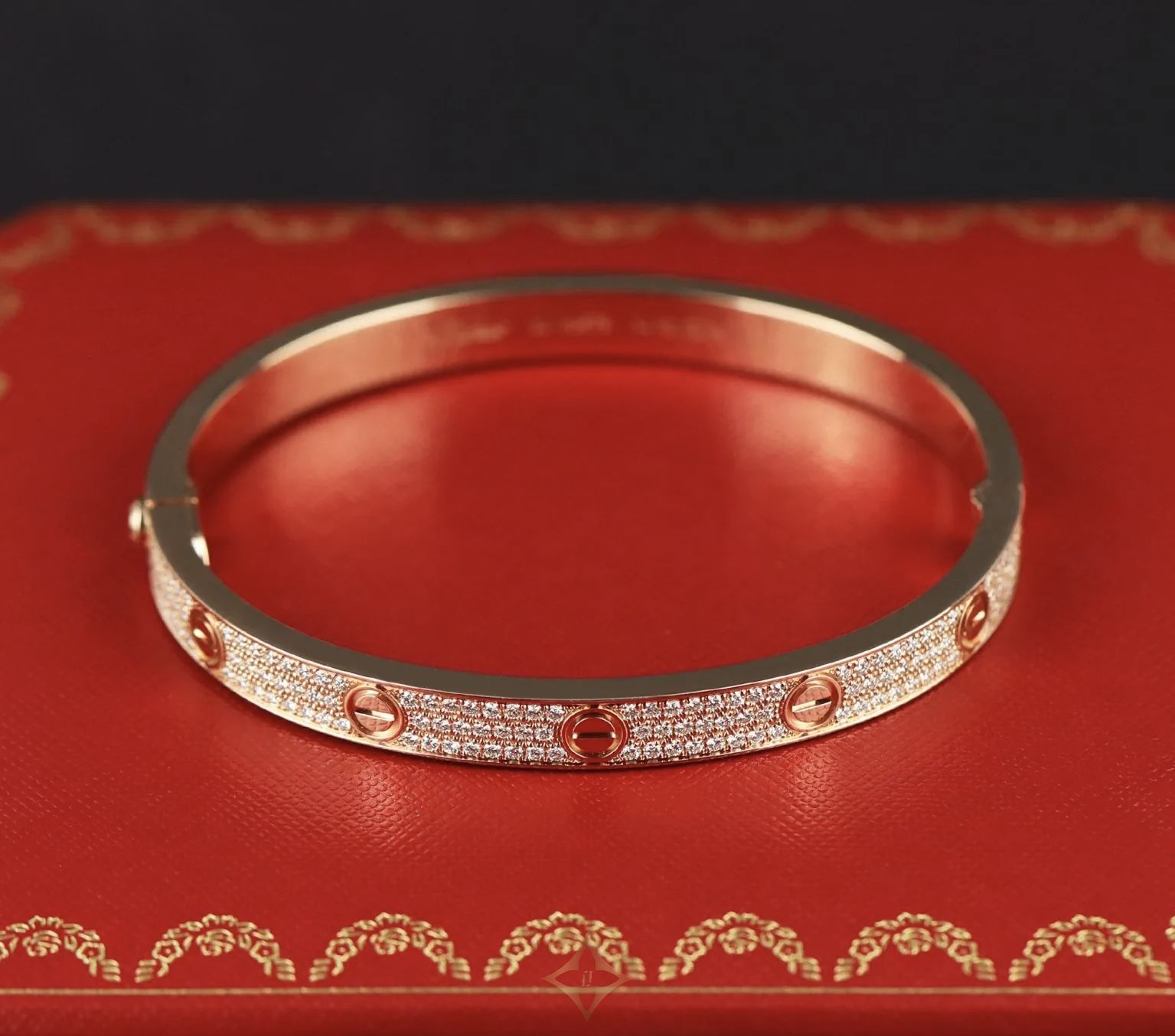 Cartier 18ct Rose Gold Diamond-Paved Love Bracelet – Full Set – Size 20 – 2019 | London 🇬🇧