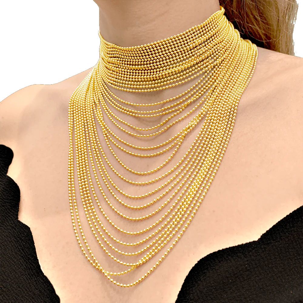 A necklace signed by the House of Cartier, "Draperie" collection, in 750/000 yellow gold composed of 34 rows of ball chain.