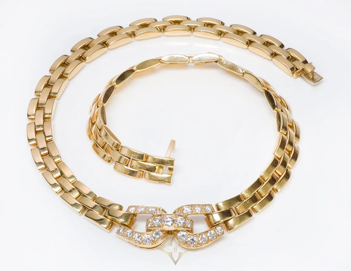 Cartier Panthere Maillon Diamond 18K Gold Necklace & Bracelet