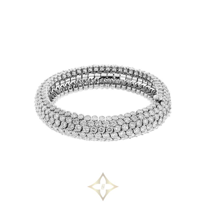 Of a bombé design, composed of 6 rows of round brilliant cut diamonds.