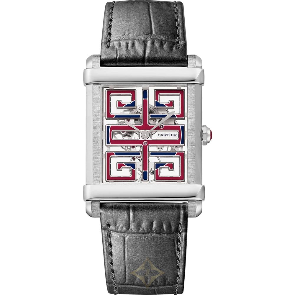 Tank Chinoise watch, skeleton, Manufacture mechanical movement with manual winding, caliber 9627 MC.