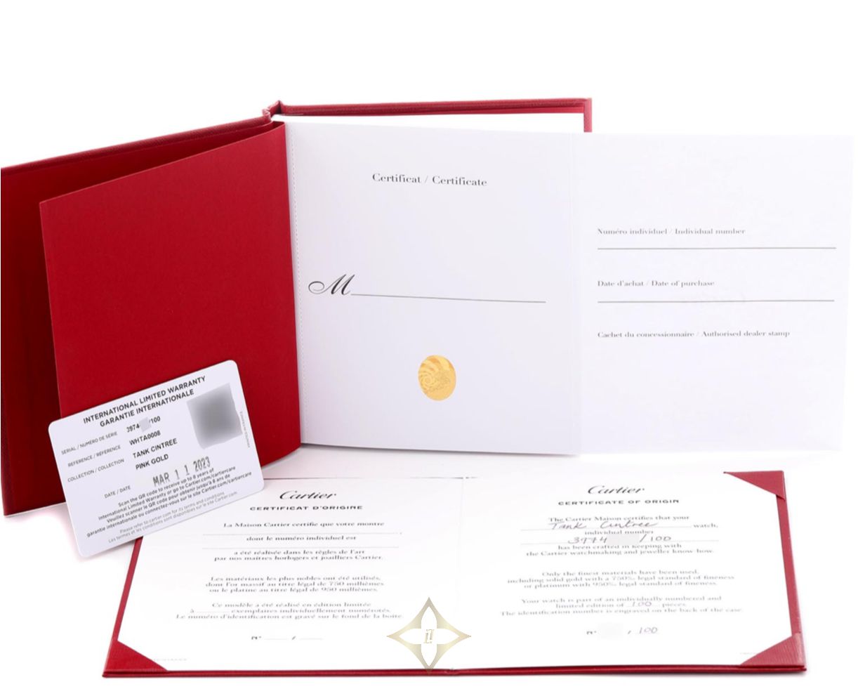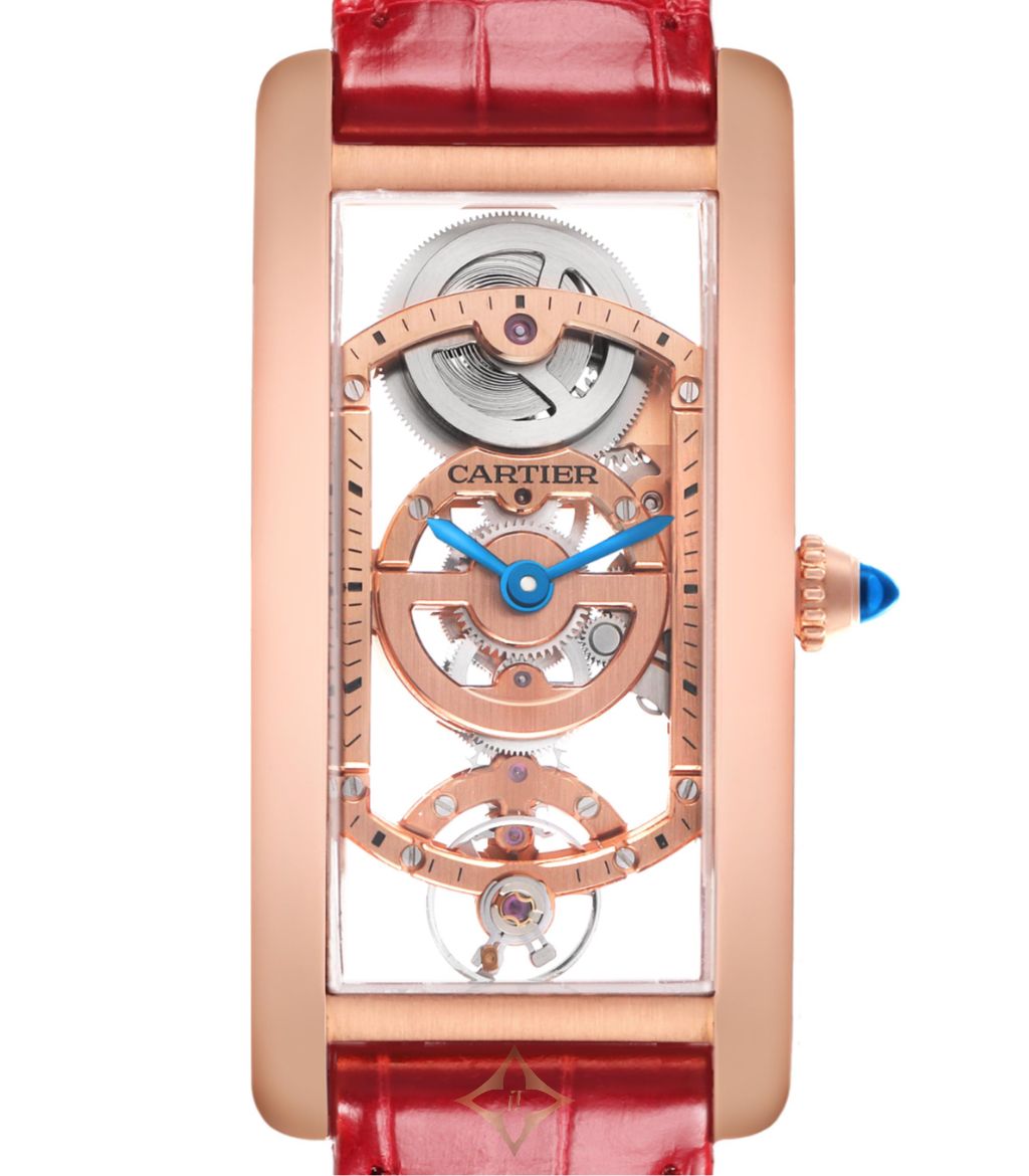Model Name: Cartier Tank Cintrée Skeleton Rose Gold Mens Watch WHTA0008 Box Card