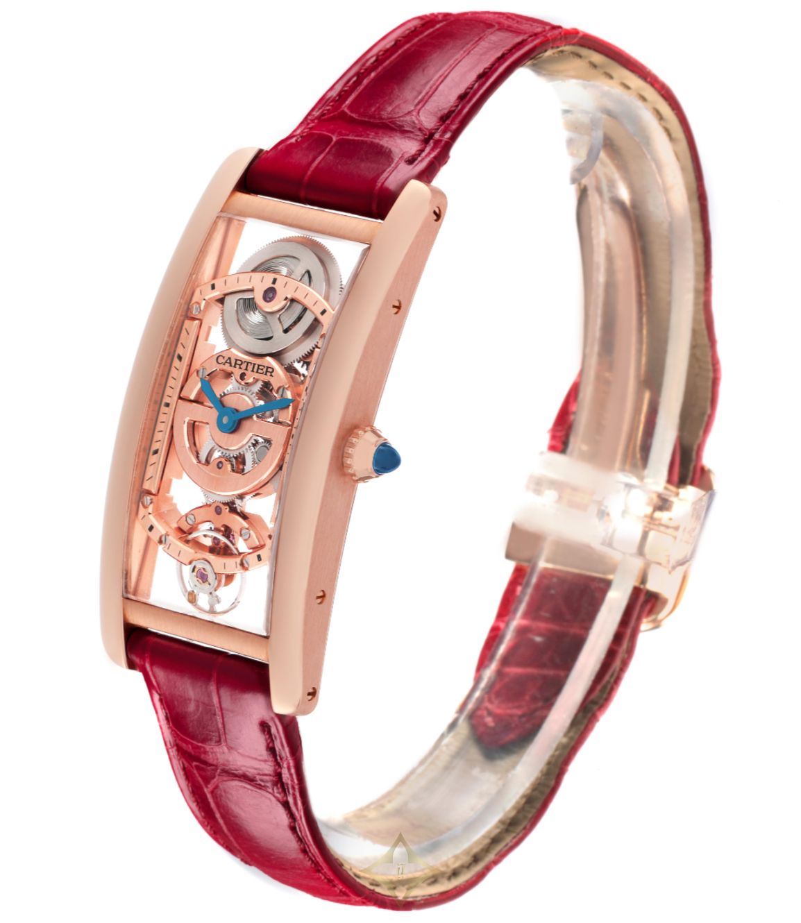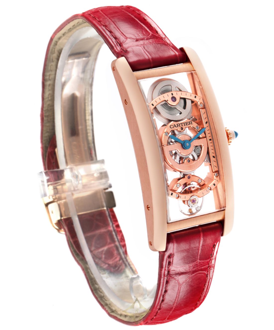 Cartier Tank Cintrée Skeleton Rose Gold Mens Watch WHTA0008 Box Card