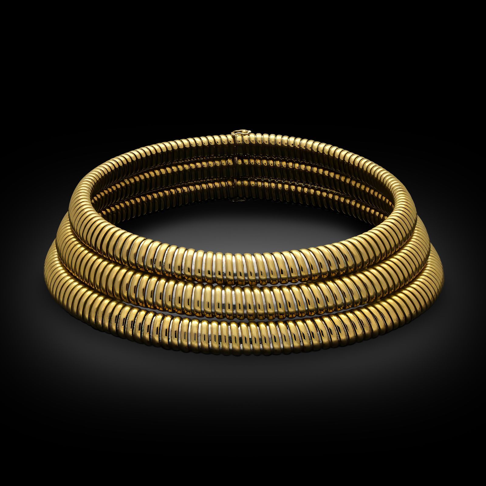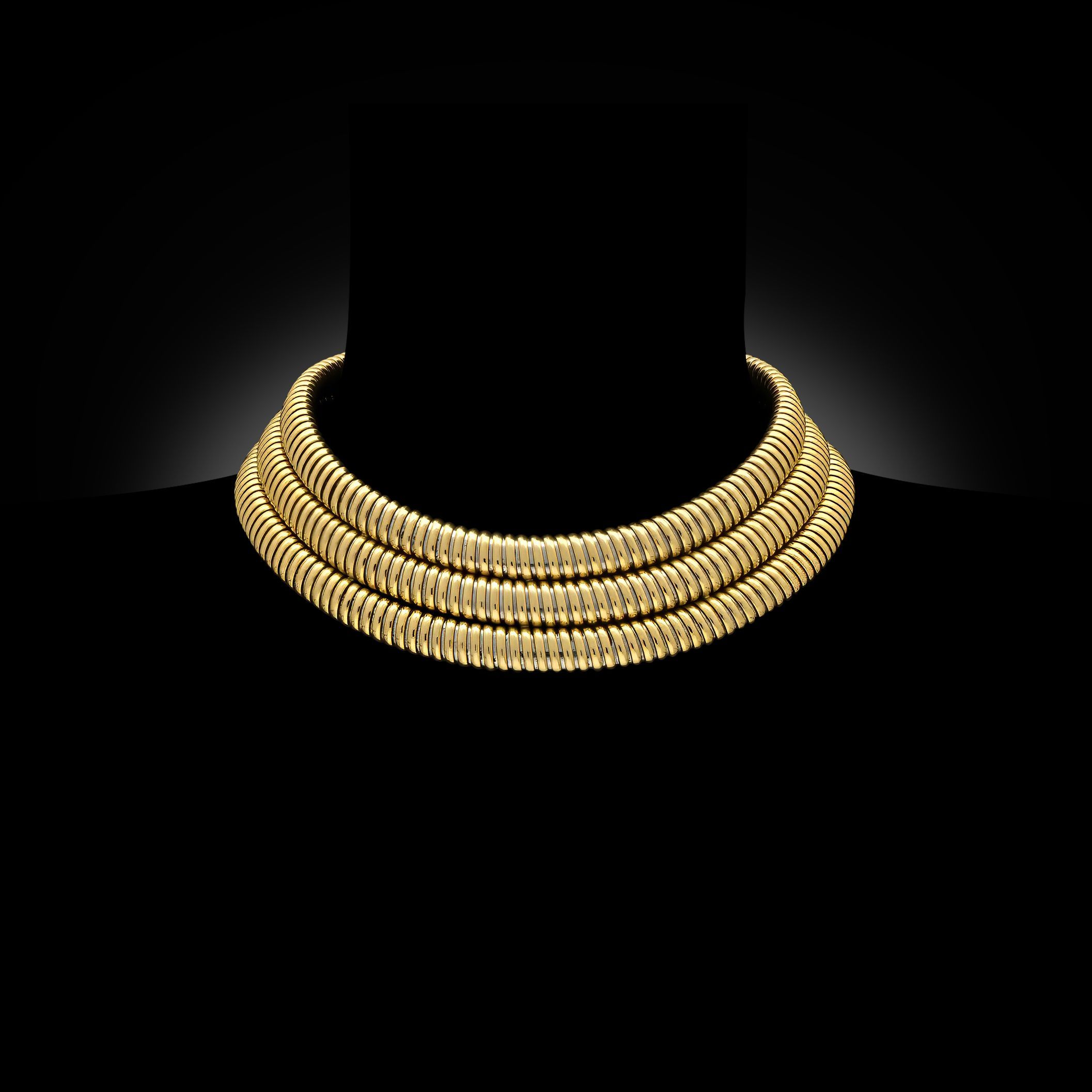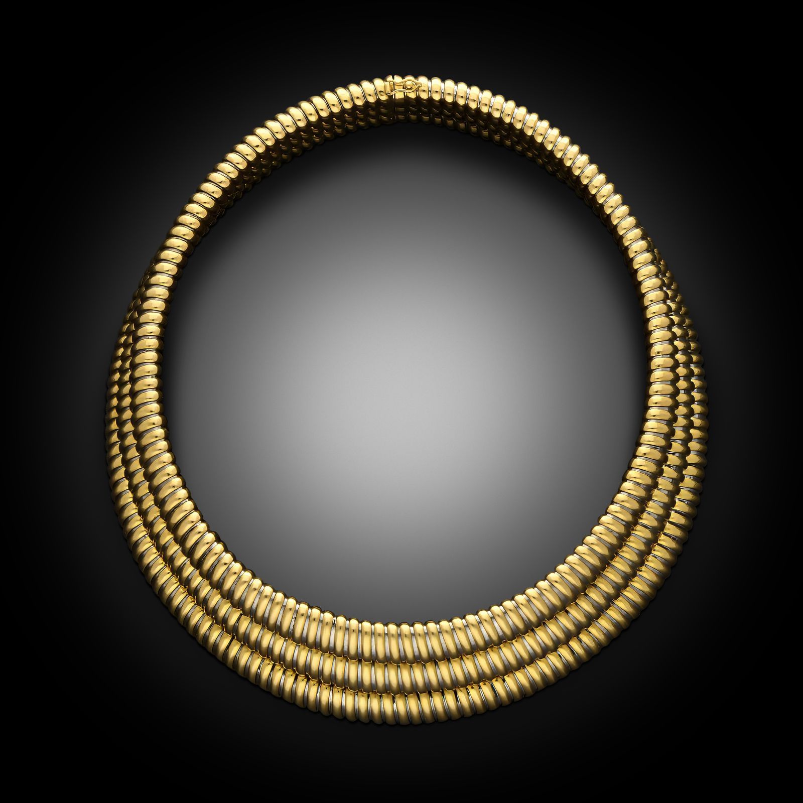 CARTIER Vintage 18ct Yellow Gold Triple Row Tubogas Necklace | London 🇬🇧