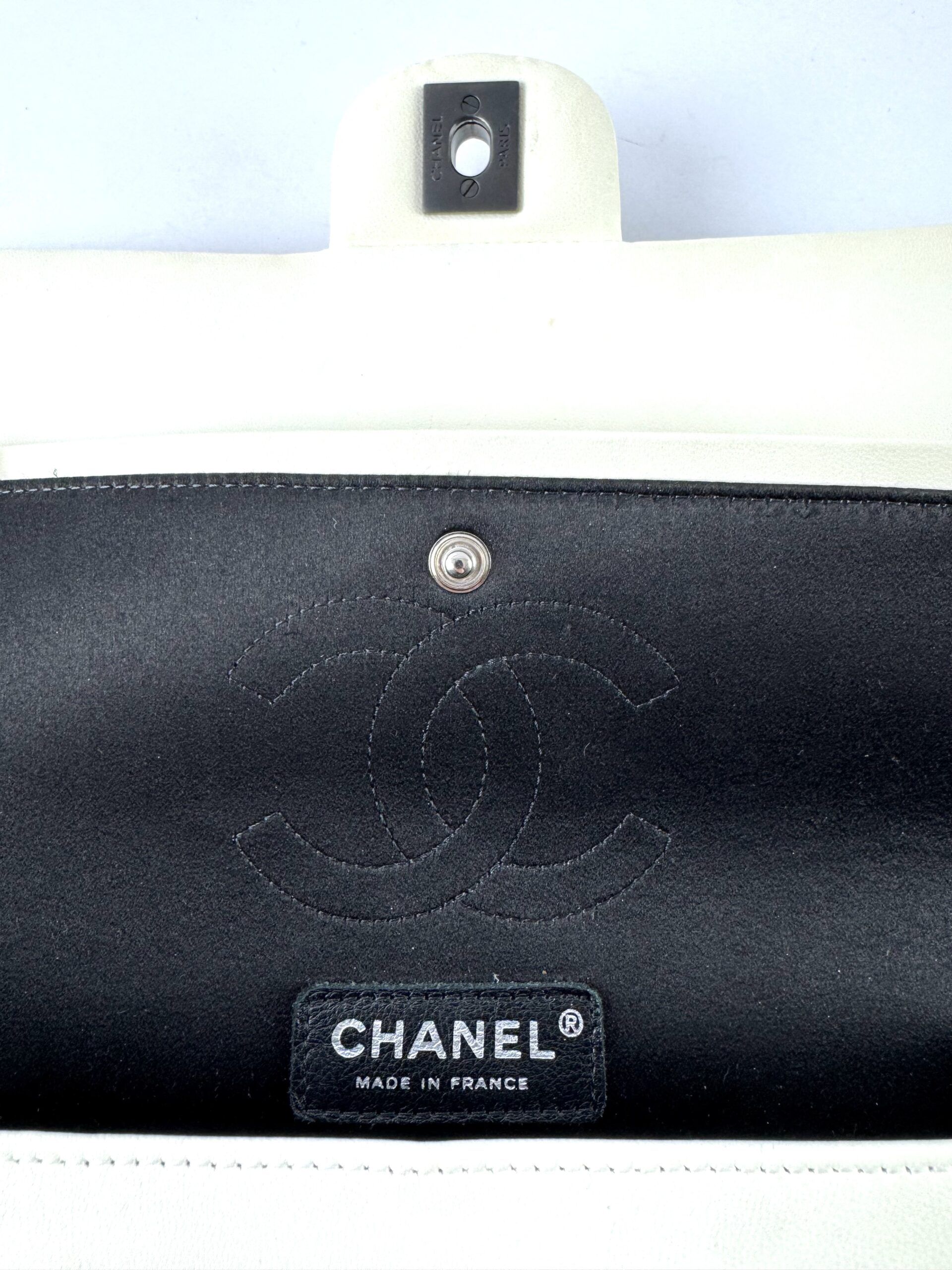 The bag comes with the signature Chanel chain strap interwoven with leather and a front flap with the classic CC turn-lock closure. A distinctive and collectible item, ideal for those who appreciate unique Chanel pieces with character.