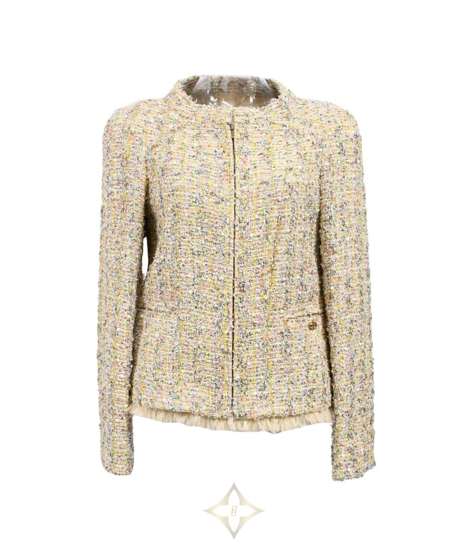 Chanel Green, Pink, Yellow & Silver Woven Tweed Jacket made by Atelier Lesage | Central 🇭🇰