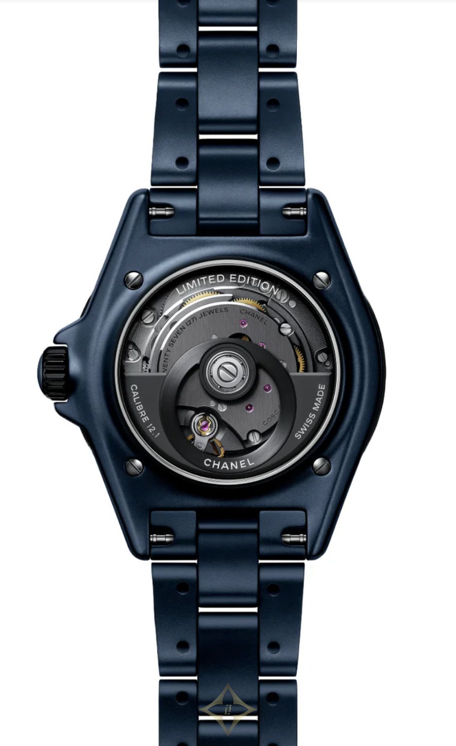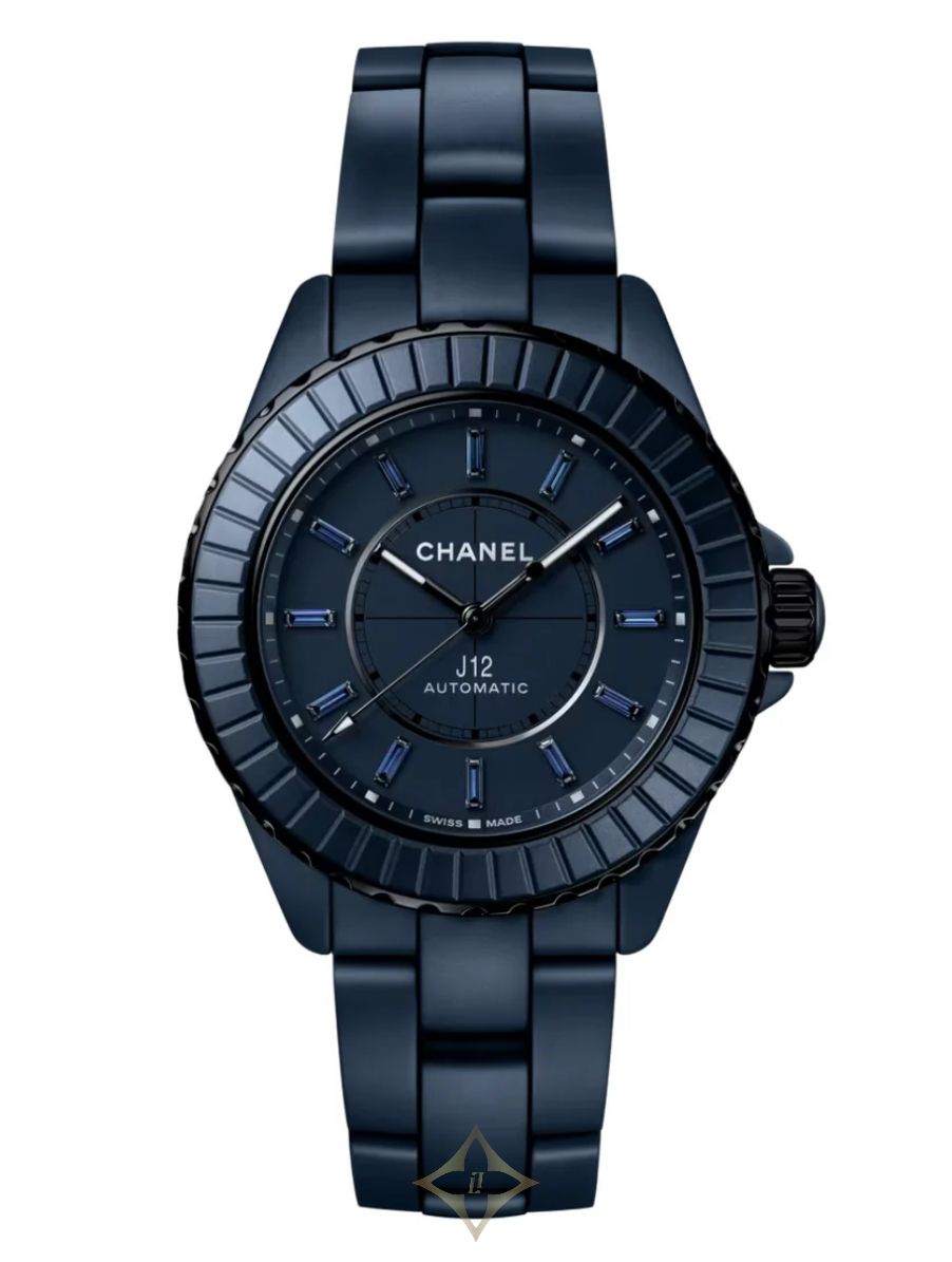 Chanel J12 38 mm, Ceramic, Automatic PRICE: CAD 32,950 Reference Number: H10310 Limited Edition: Yes Material: Céramique Band: Bracelet en céramique haute résistance bleue mate Bezel Material: Ceramic, Steel Clasp: Butterfly Clasp Dial Color: Blue Features: Heures, Minutes, Secondes Glass: Saphir Movement: Automatic Power Reserve: 70 hours Stone Details: 12 saphirs bleus taille baguette (~0,28 carat) Water Resistance: 200.0 m Case size: 38 mm Manufacturer’s Warranty: 5 years Collection: J12 Montre J12 BLEU Calibre 12.1, 38 MM Céramique haute résistance bleue mate et acier, index saphirs bleus Château D'Ivoire 2020 Rue de la Montagne, Montreal, QC H3G 1Z7, Quebec, Canada Phone: +1 514-845-4651 Email: info@chateaudivoire.com
