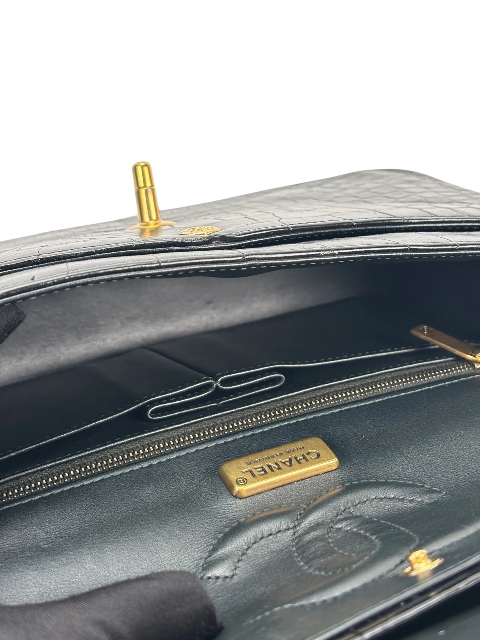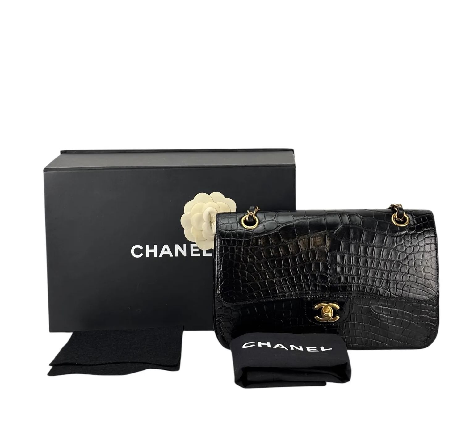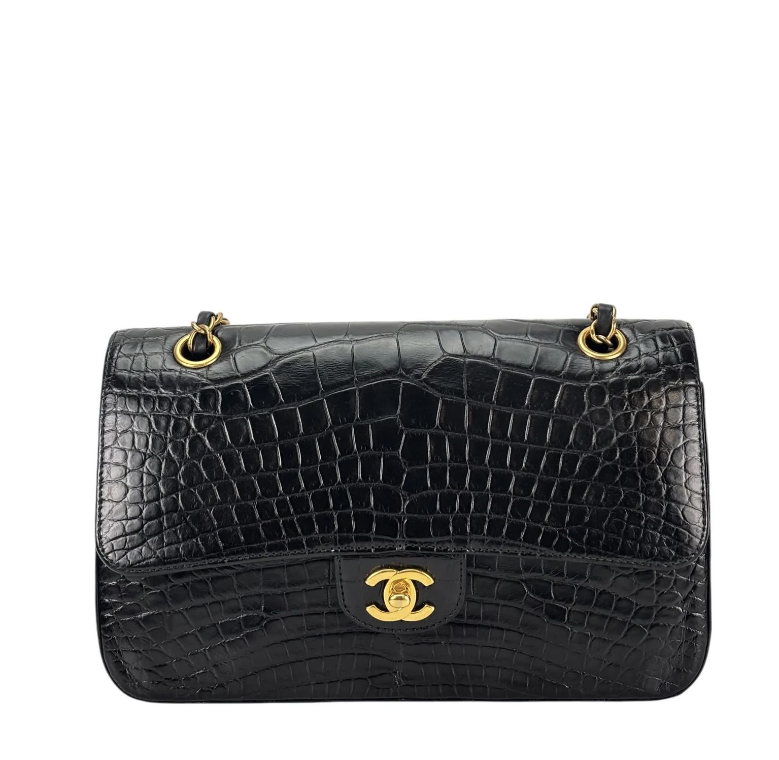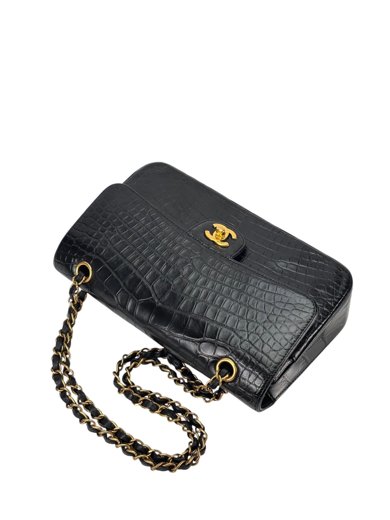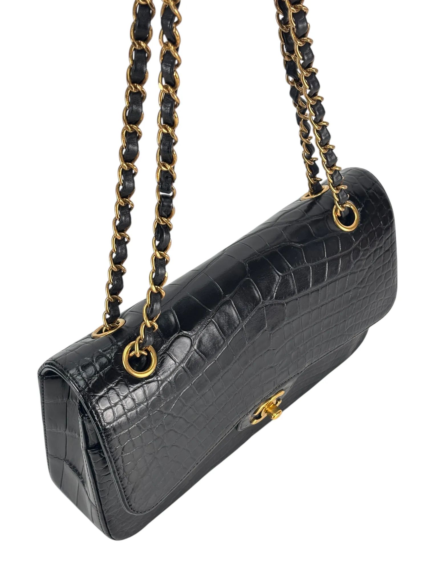 CHANEL - Medium Black Crocodile Double Flap Bag