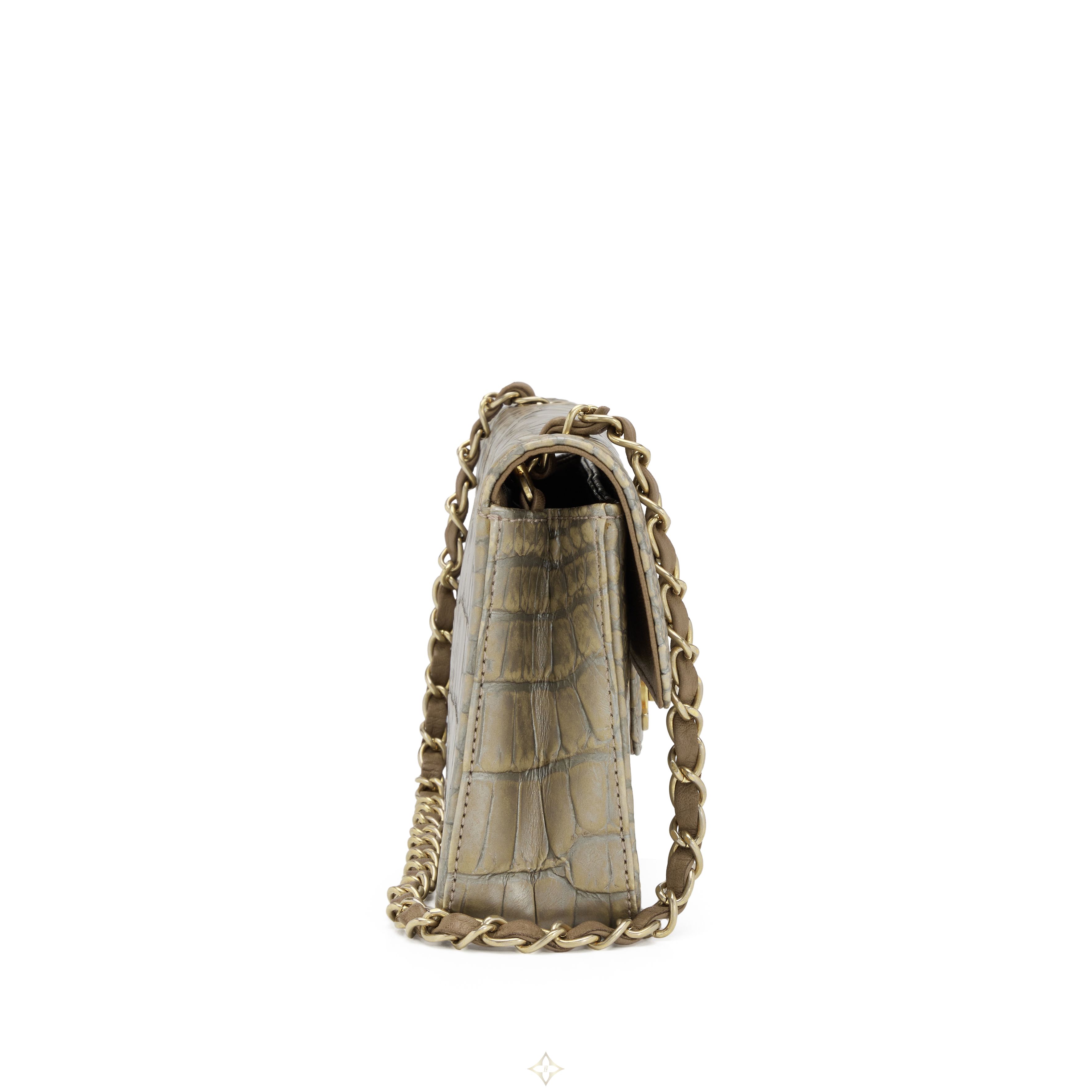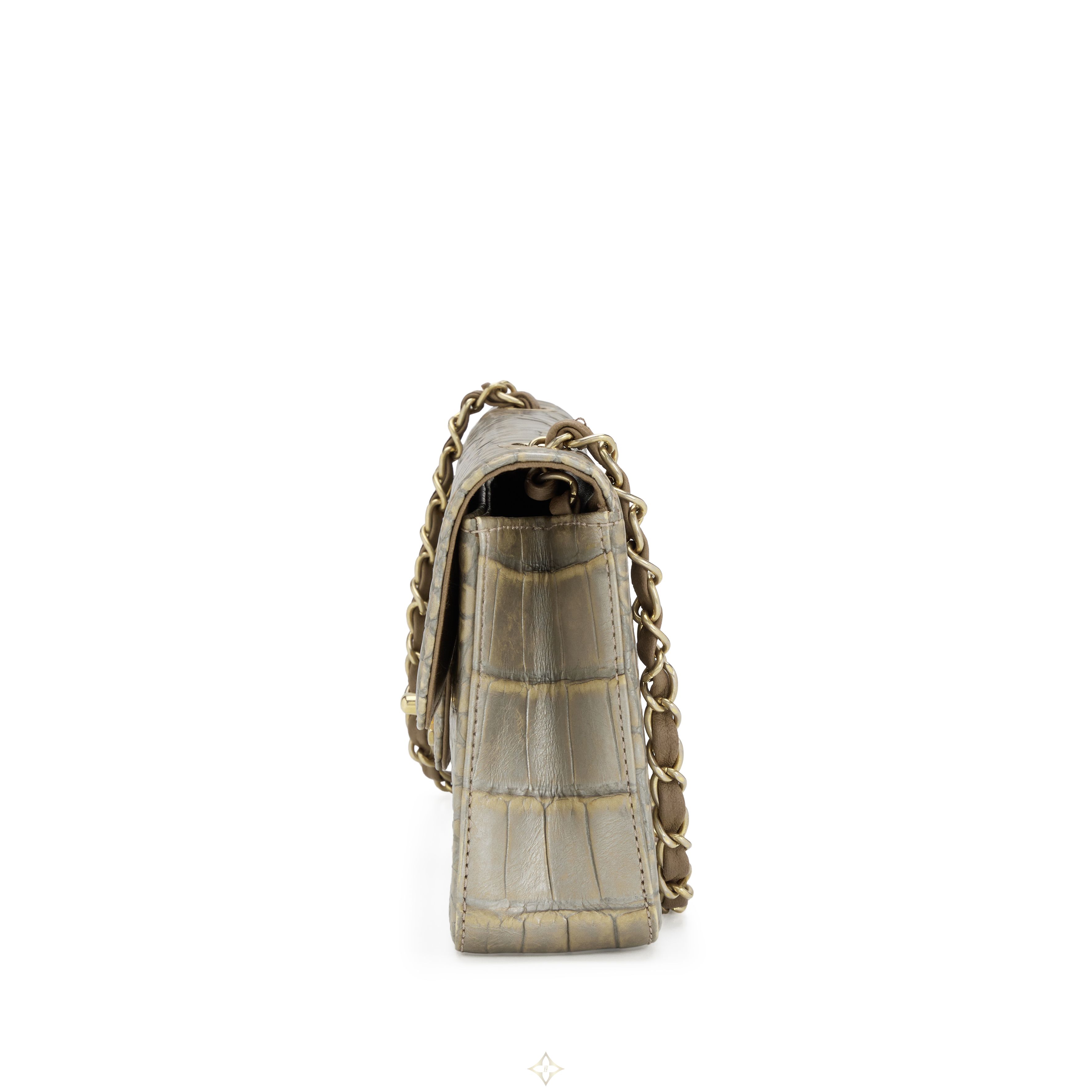 Metallic Silver and Taupe Alligator East West Classic Flap Bag Aged Gold Hardware, 2008
