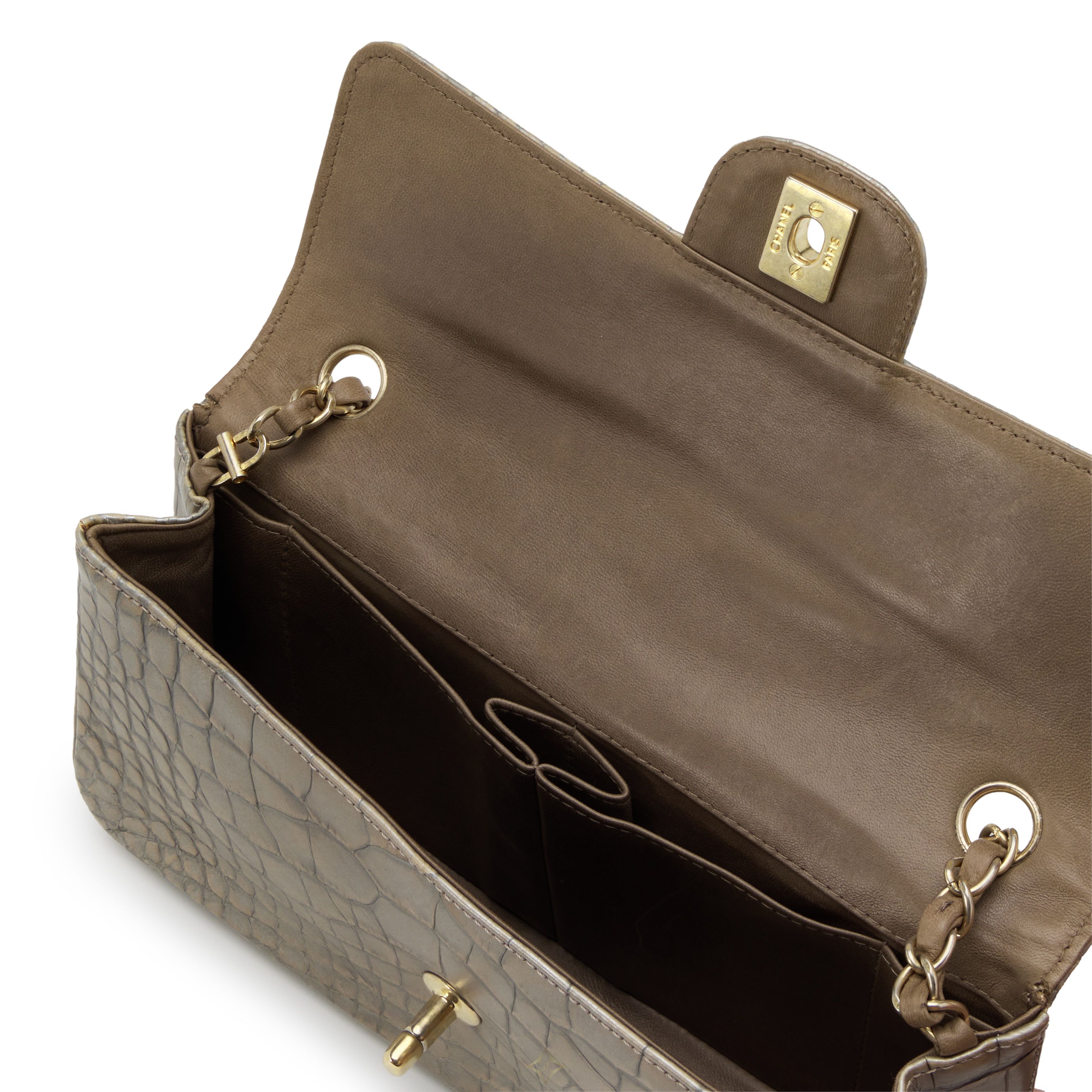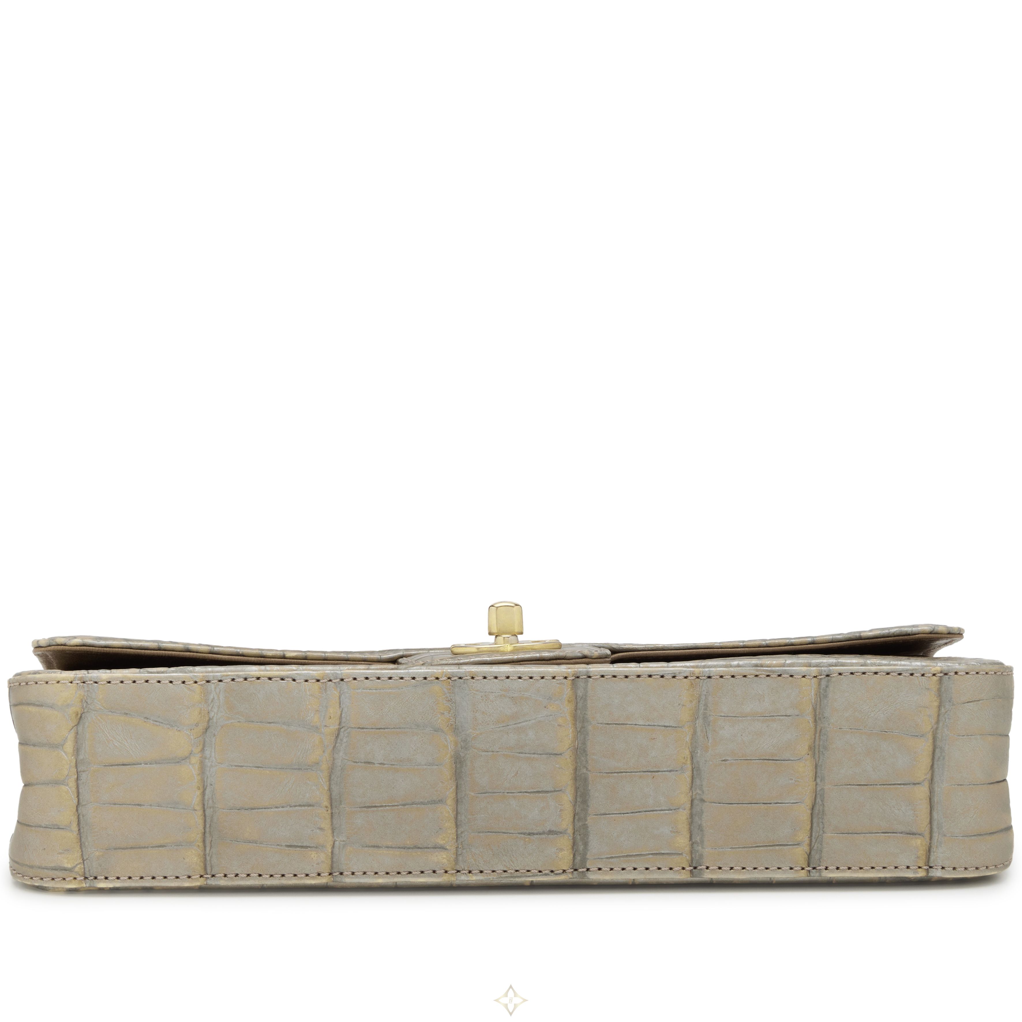 Chanel Metallic Silver and Taupe Alligator East West Classic Flap Bag Aged Gold Hardware, 2008